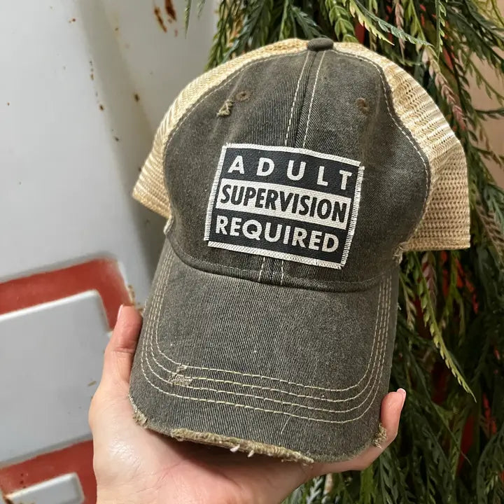 Vintage distressed trucker cap "Adult Supervision Required" Color: Black distressed