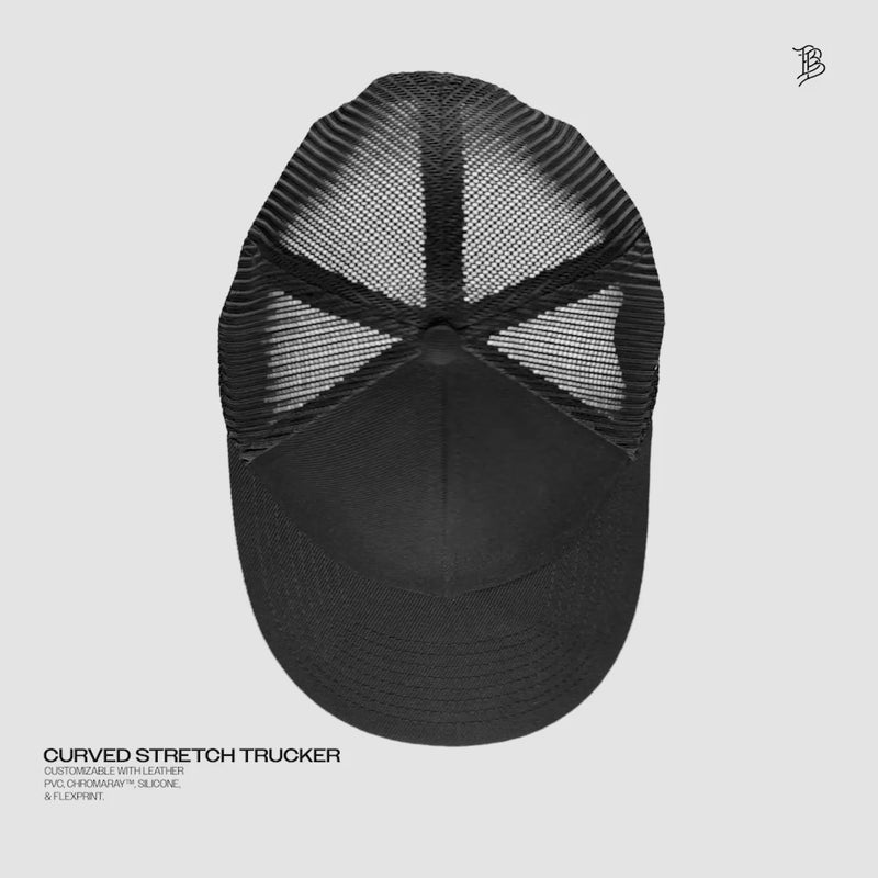 We added a comfort stretch sweatband and mesh backing to our already durable curved trucker, rendering this hat truly unstoppable..