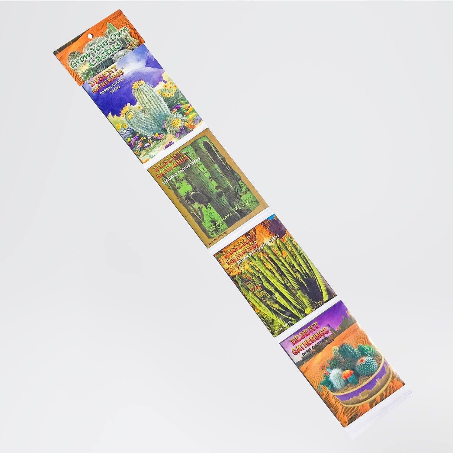 The Cactus Strip is perfect for anyone that loves plants, gardening, or the outdoors. This vibrantly colored seed strip includes four of our famous seed packets inside a translucent bag. Includes our most popular cactus seed packets: Barrel Cactus, Saguaro Cactus, Organ Pipe, and Mixed Cactus Dish Garden.