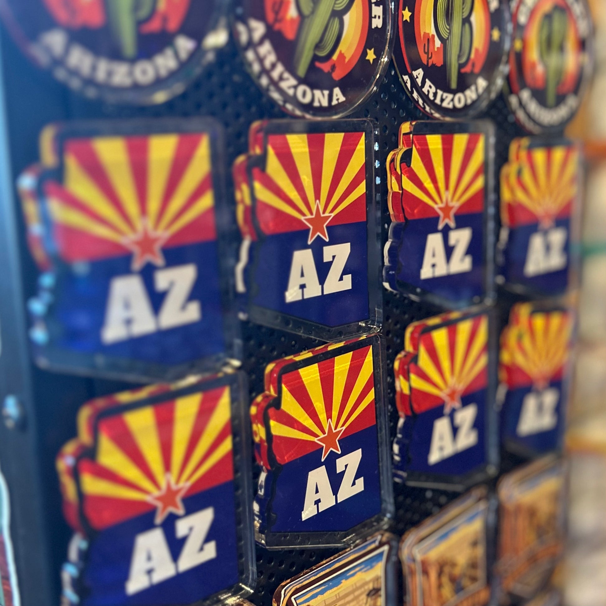 Celebrate Arizona in style with this unique acrylic magnet featuring the state flag! The 1/4" thick acrylic is sturdy and bold, and the flag design is eye-catching and sure to stand out. Add some flavor to your refrigerator and show off your love of Arizona! These magnets feature 1/4” thick acrylic. Each one is printed with our durable ultra vivid process and are given a strong, 1” ceramic magnet applied to the back.