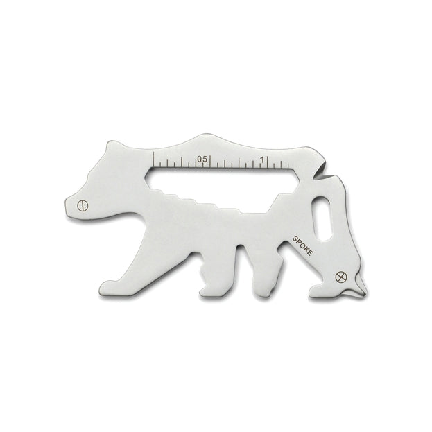 15-in-1 Stainless Steel Bear Multi-Tool features nail pry, ruler, flathead screwdriver, crosshead screwdriver, hex wrench (5/5.5/6/7/8/9/10mm), spoke key, hex wrench 4mm, and bottle opener.
