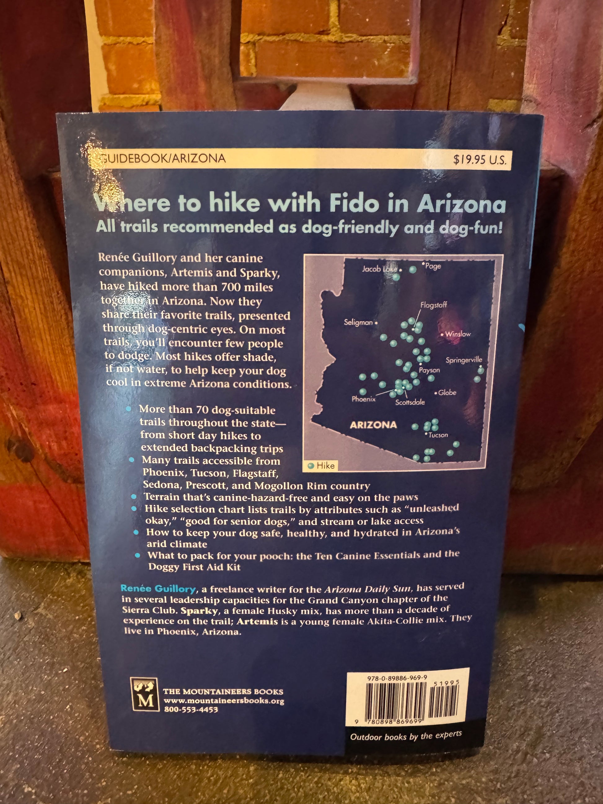 Guidebook to 75 dog-suitable trails throughout Arizona -- many accessible from urban areas, How to keep your dog safe, healthy, and hydrated in Arizona's arid climate, What to pack for your dog: the Ten Canine Essentials and the doggy first aid kit Renée Guillory and her canine companion, Artemis, have hiked more than 700 miles together in Arizona. Now they share their favorite trails, presented through dog-centric eyes.