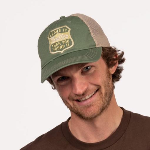 Spread positivity wherever you go with the Better Than You Found It Baseball Cap. Featuring a badge on the front that reads "Leave It Better Than You Found It," this cap is perfect for any adventure, whether it's to the farmer's market, a music festival, or the great outdoors.