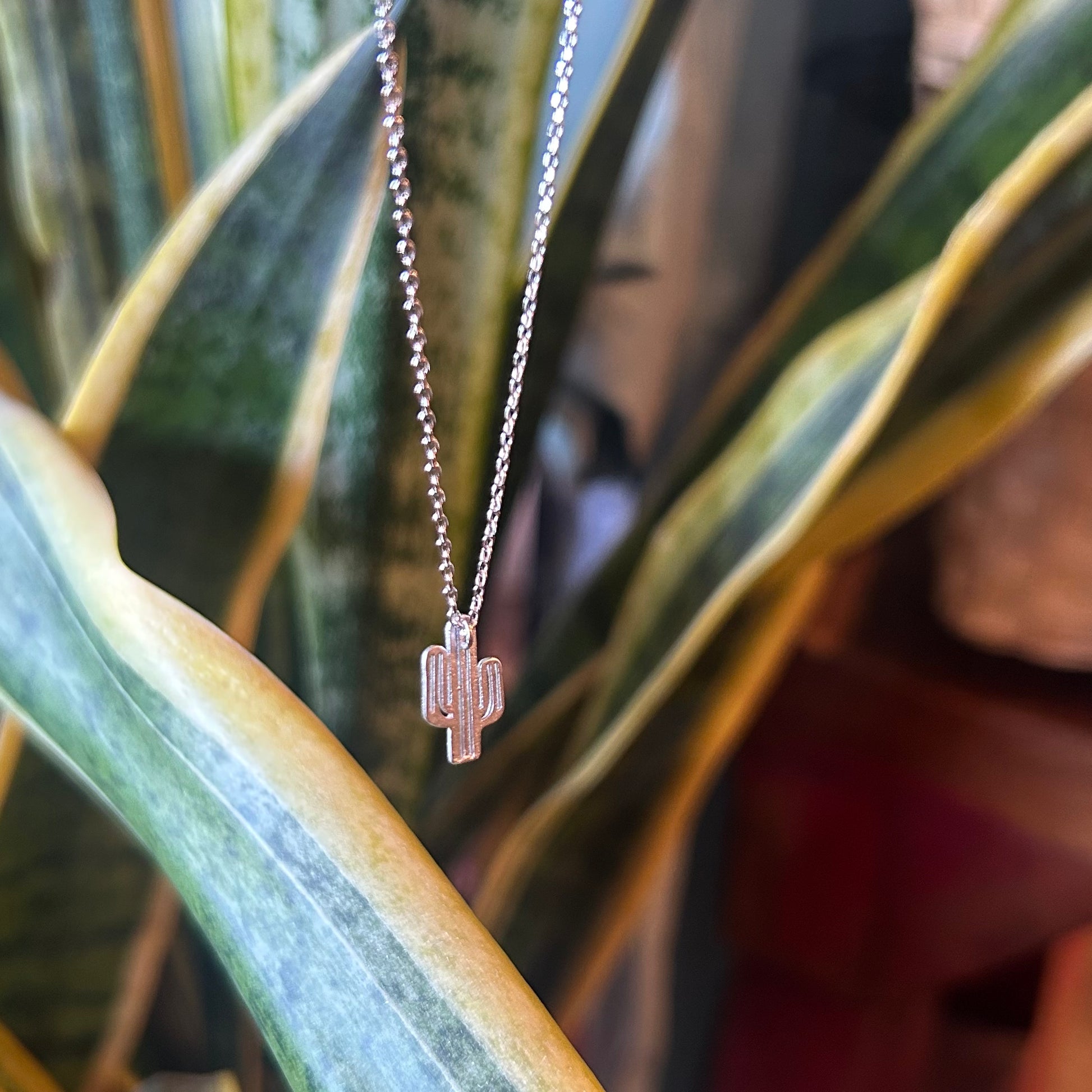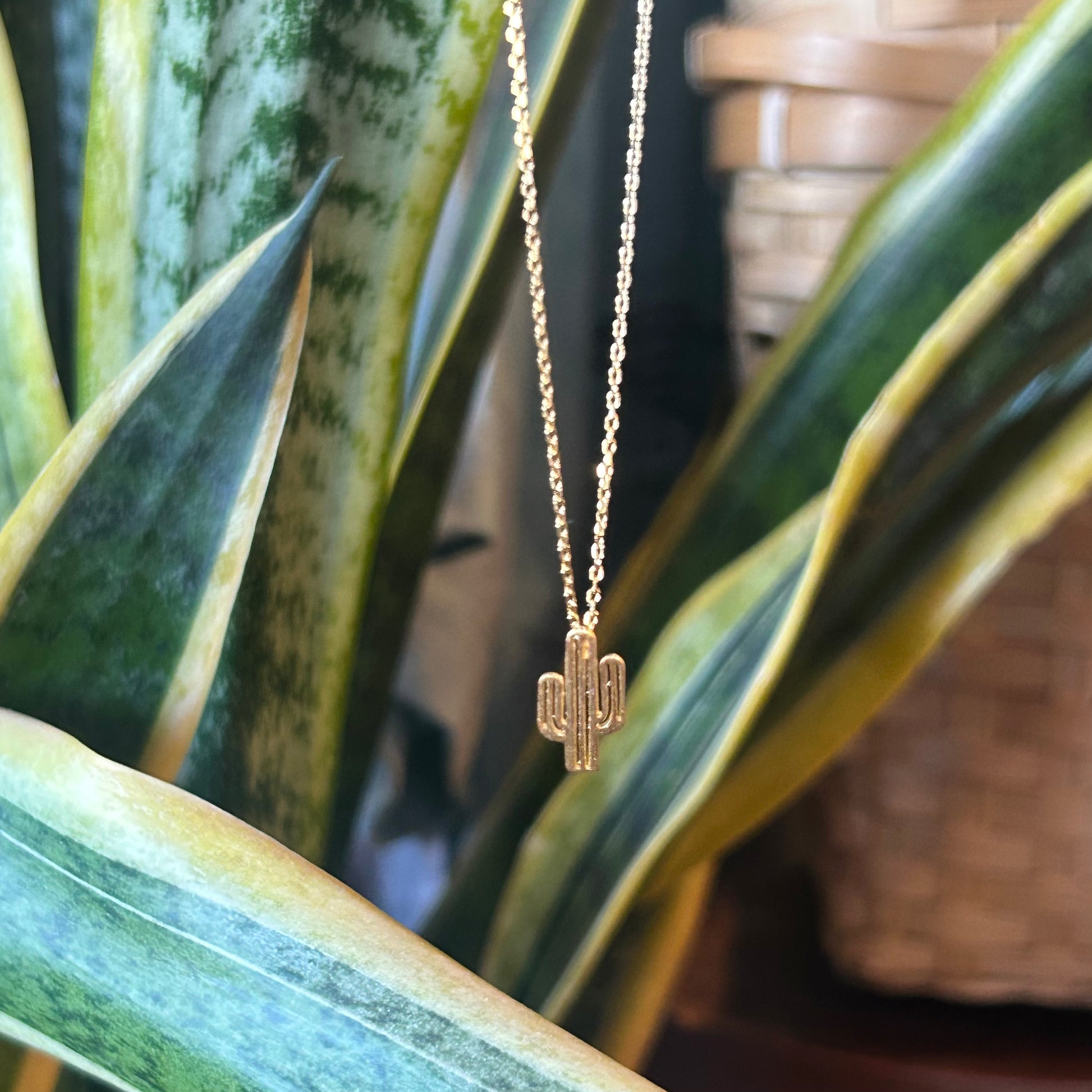 Ribbed Cactus Pendant Necklace