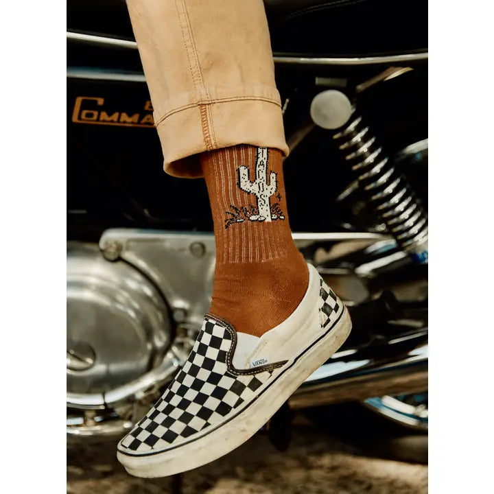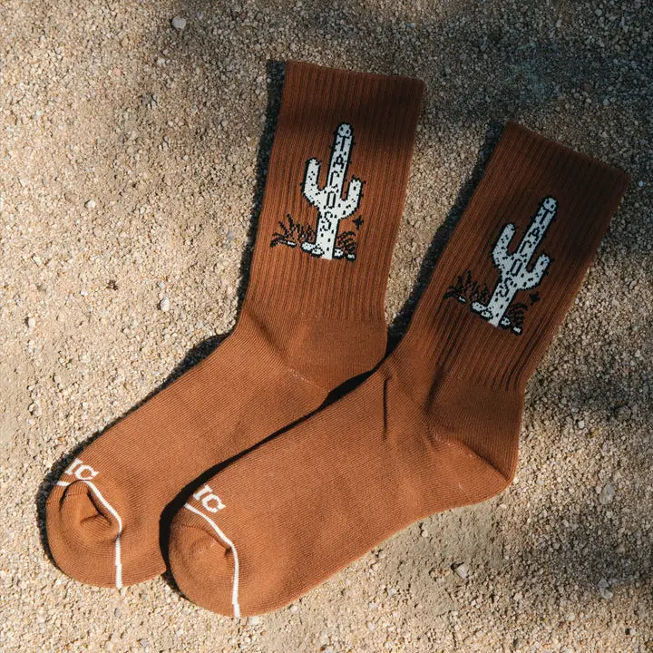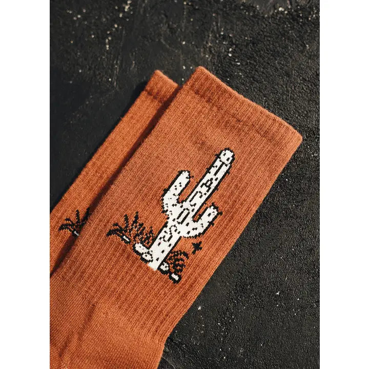 Half terry crew sock “TACOS" on a Cactus on both sides of sock available in rust color