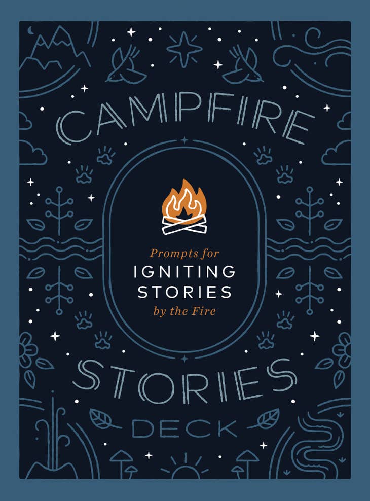 The Campfire Stories Deck includes prompts for igniting stories by the fire. Campfire Stories Deck is a collection of 50 cards with storytelling prompts to help people of all ages find engaging and meaningful ways to connect with family and friends. While the glow of a campfire is the iconic setting for intimate stories, these cards can be used anywhere--on a camping trip, in the backyard, around the dining room table, or even an online hangout--to spark a story. The cadence and authenticity of personal stories can help us reveal ourselves, allay fears, bring comfort, and pass the time.