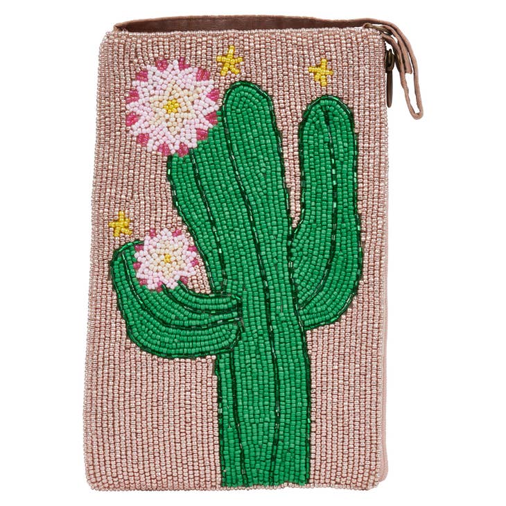A cactus without thorns? Yes please! On trend and adorable. Dress it up or dress it down! The Club Bag holds your essentials in style! Hand beaded by artisans in India, this versatile smart phone bag can be worn cross body or as a wristlet. Includes 54" cross body strap that can tuck inside when not in use, a short strap that unsnaps so the bag can be attached to a larger bag or belt, and a separate, secure side zip pocket for cash and credit cards.