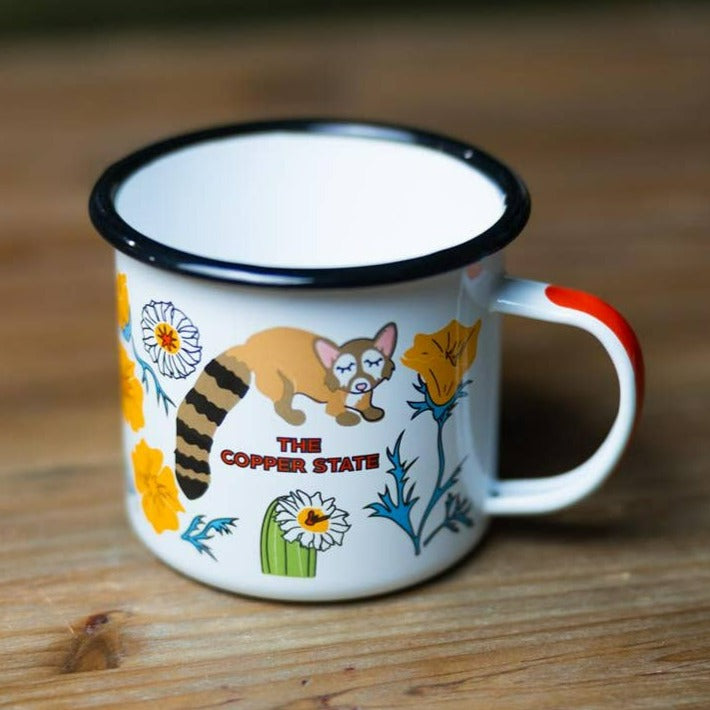 Welcome to the Grand Canyon State. From the rushing waters of Havasu Falls to the red rock buttes of Sedona, there are so many beautiful sights to see in this land of desert sands. Where the sun never shines and the saguaro cactus blooms high in the sky - I have Arizona is on my mind. Hand-crafted by our renowned European enamelware manufacturer using a unique, age-old technique to ensure a smooth, long-lasting finish, this mug is then double-dipped with a second coat of enamel to reinforce the rim and handle. It is made to withstand every wild adventure...and the test of time.