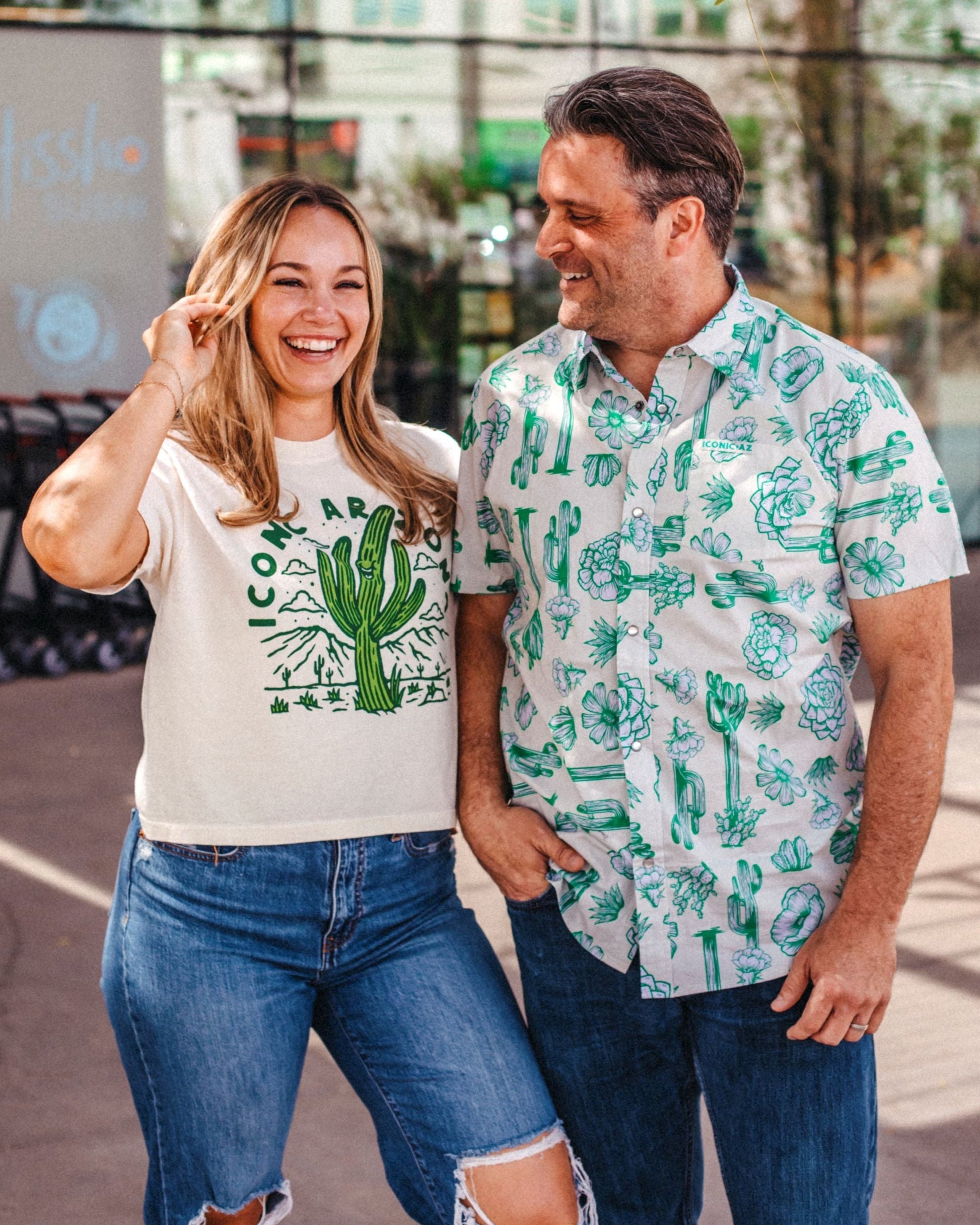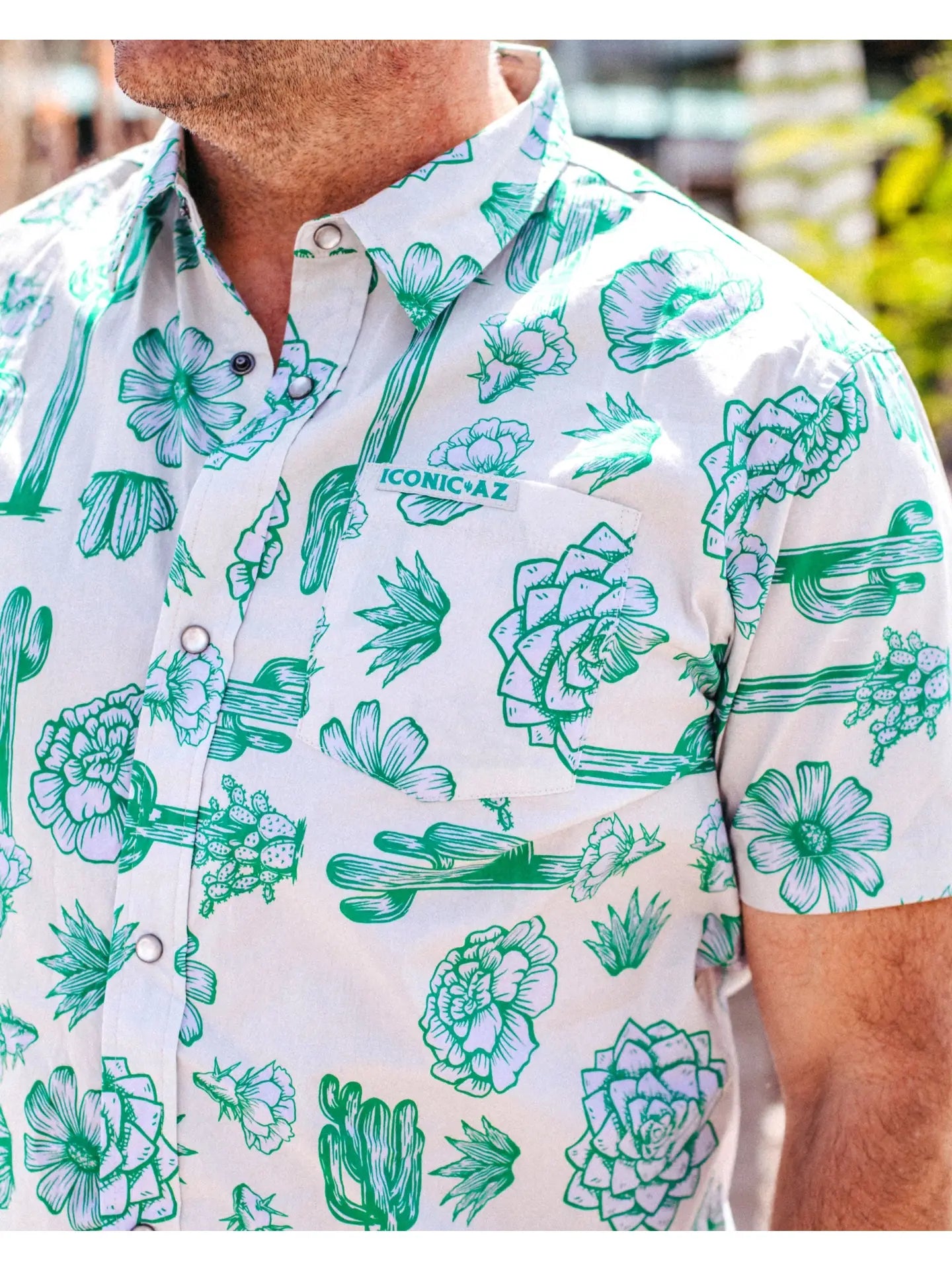 Celebrate the Desert Flora of the Arizona with this stylish button-up shirt.
