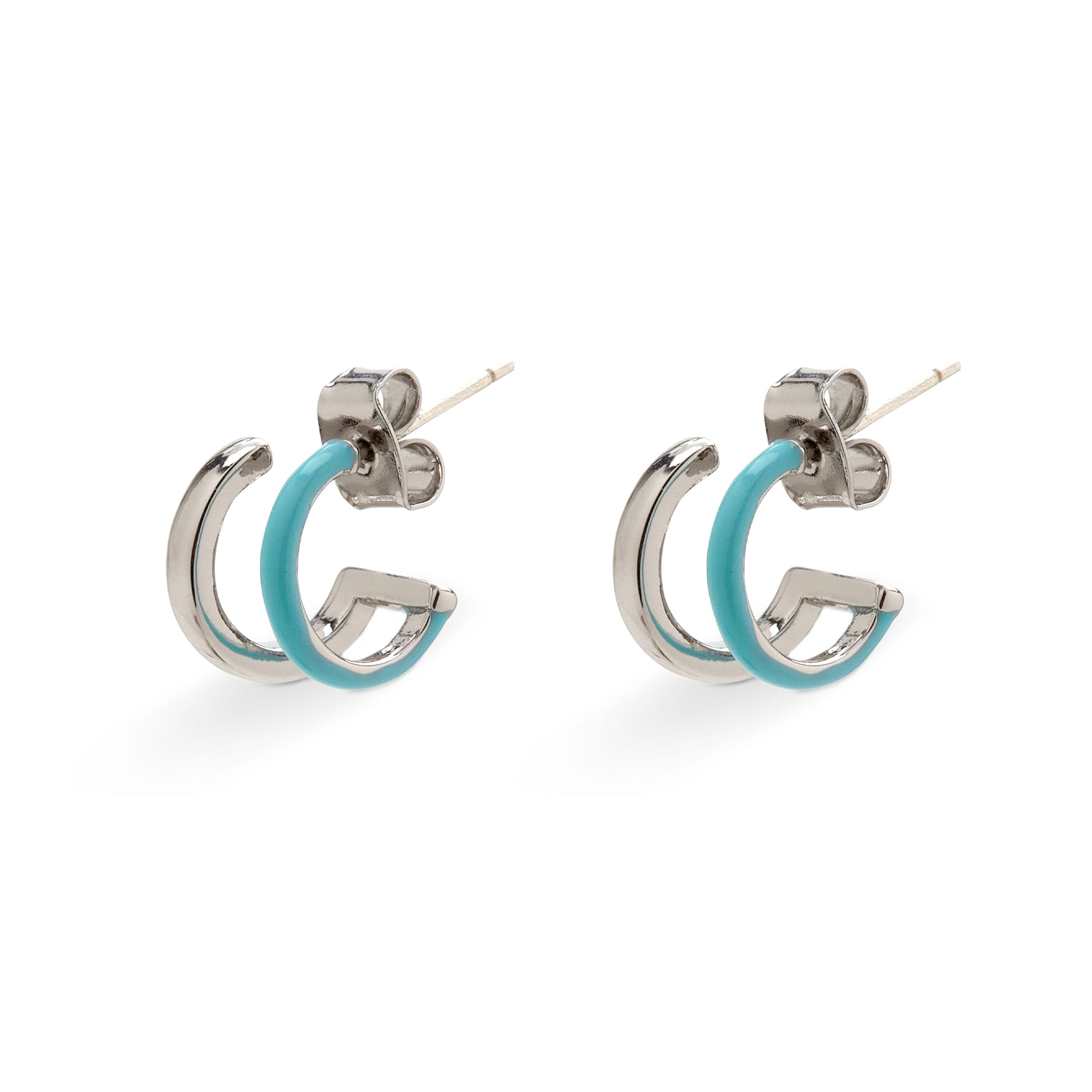 If you're looking for a classic look with a bit of edge, these Double Hoop Huggie Earrings by Pura Vida will become your go-to! A timeless design in silver with enamel, these earrings will help you put the finishing touch on any outfit.
