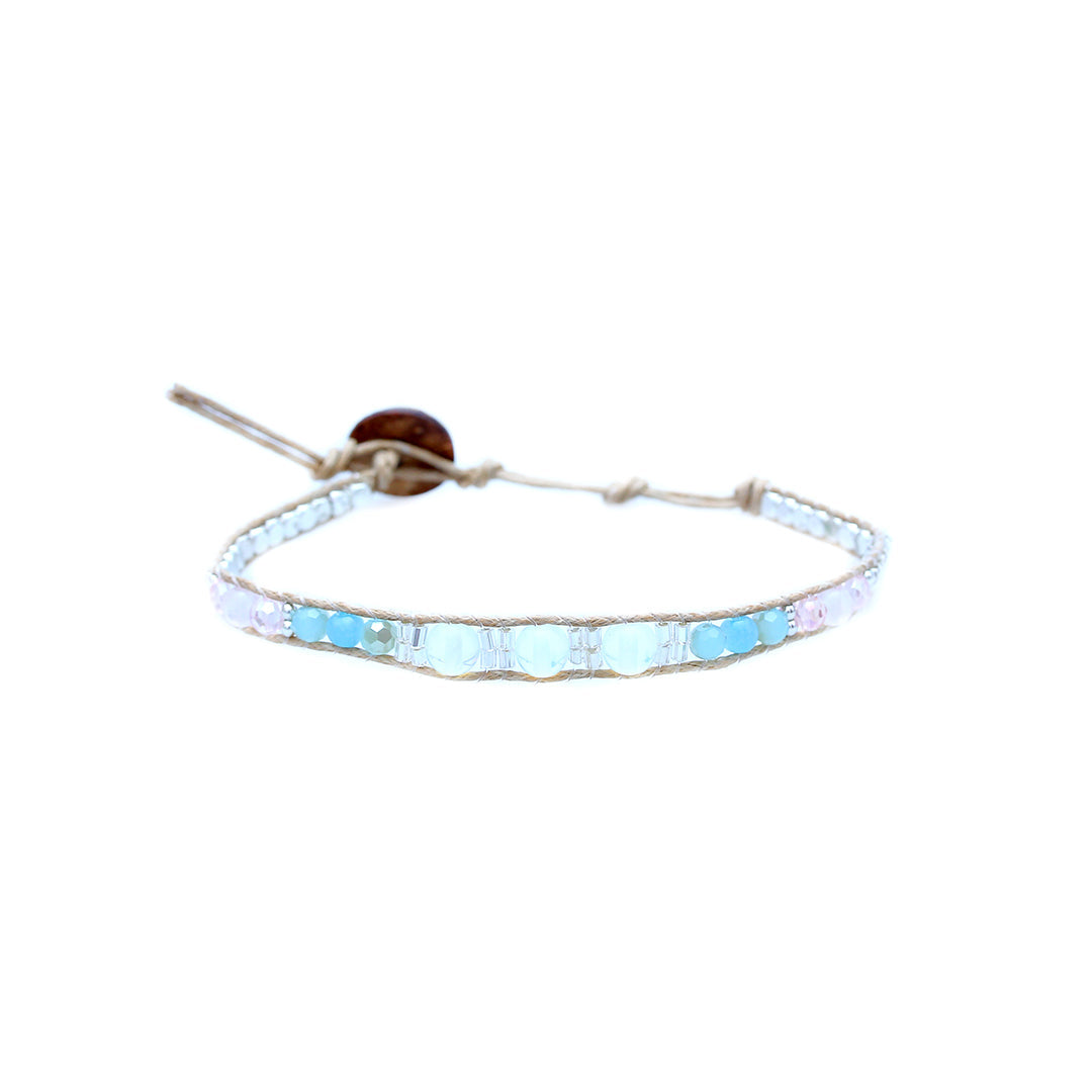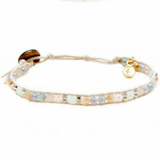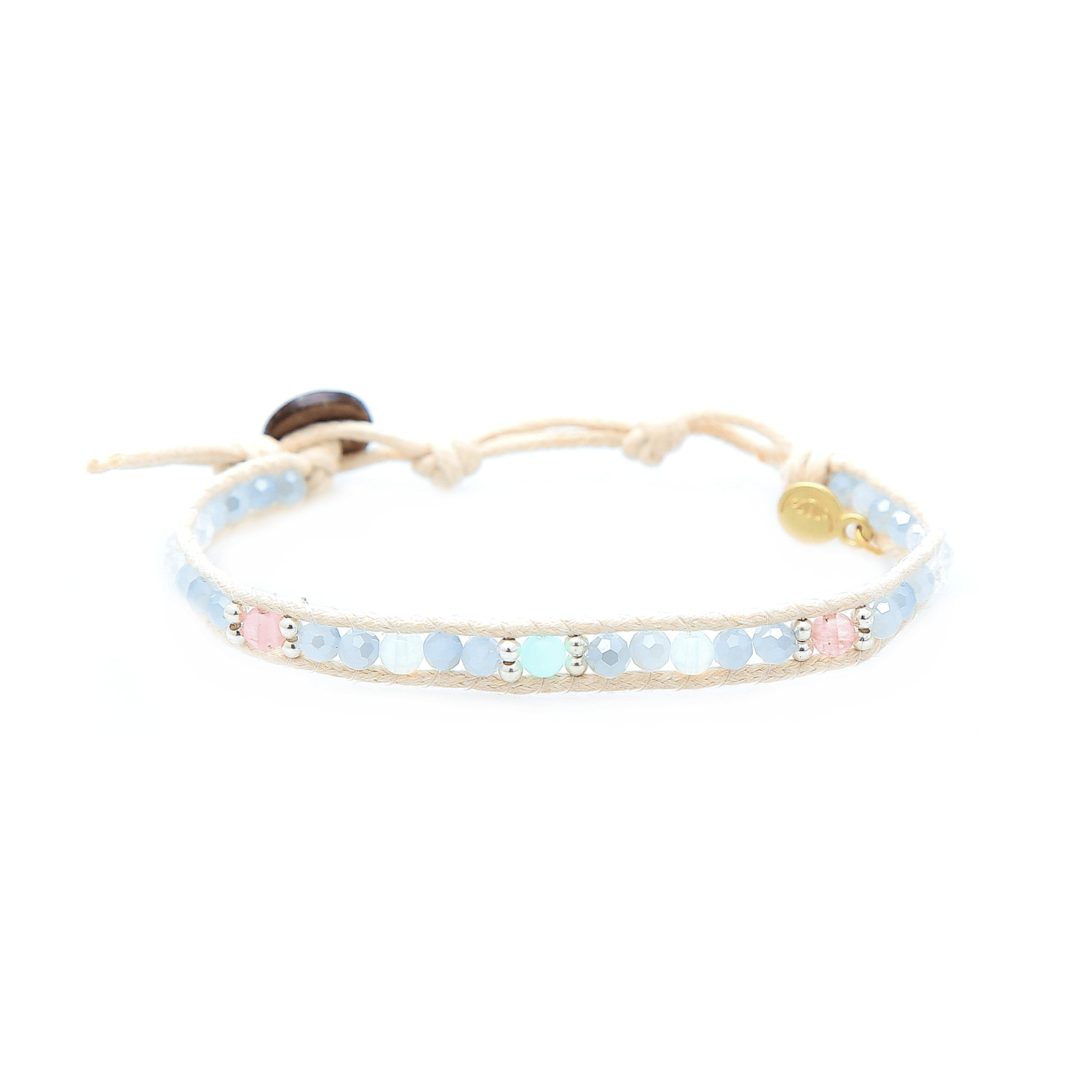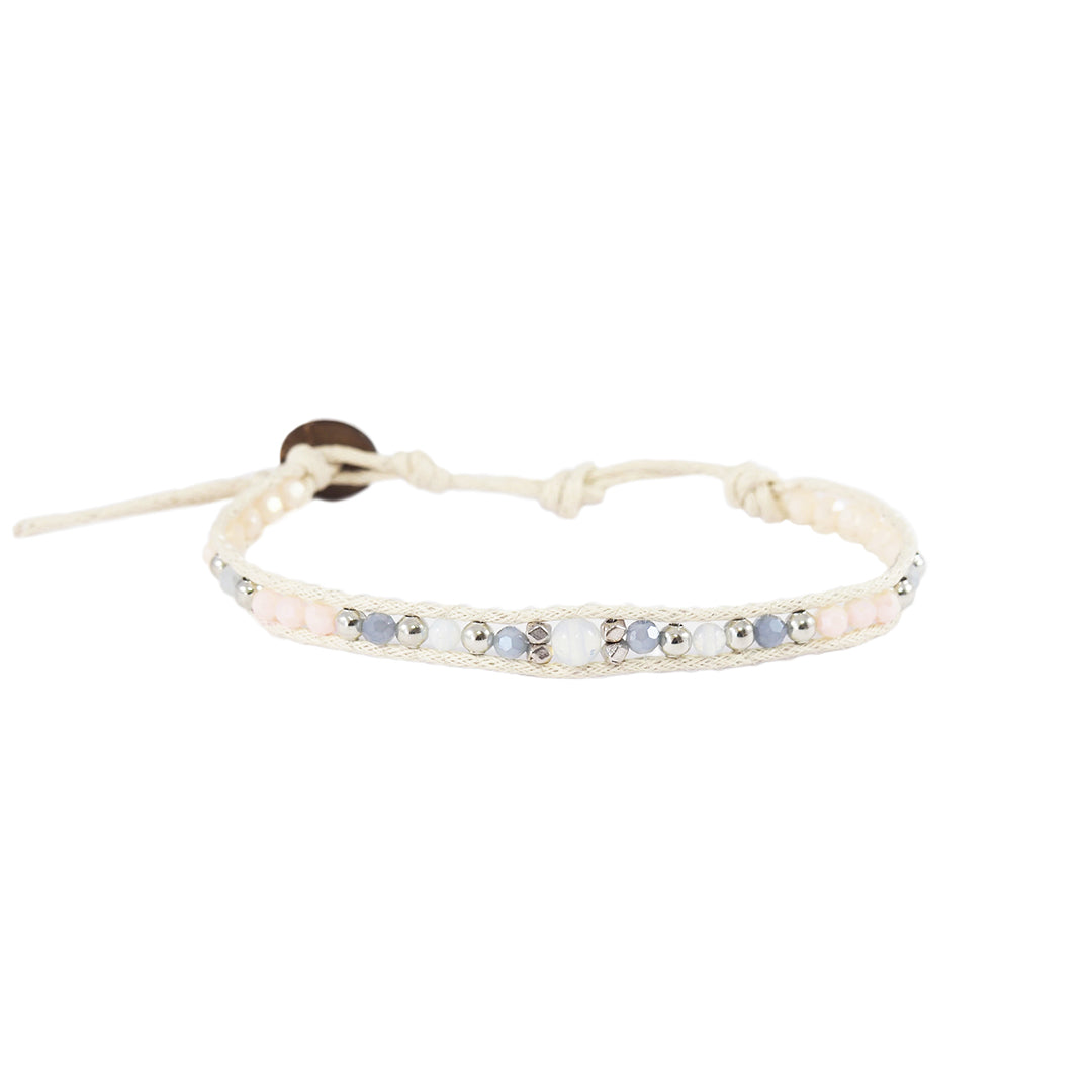 Inspired by the power and beauty of the moon, the Moonbeam collection offers moonstone in every piece. Known to heighten intuition and ease stress, everyone needs a little moonstone in their life! Please note that, due to their handcrafted nature, each bracelet is unique and may have slight variations.