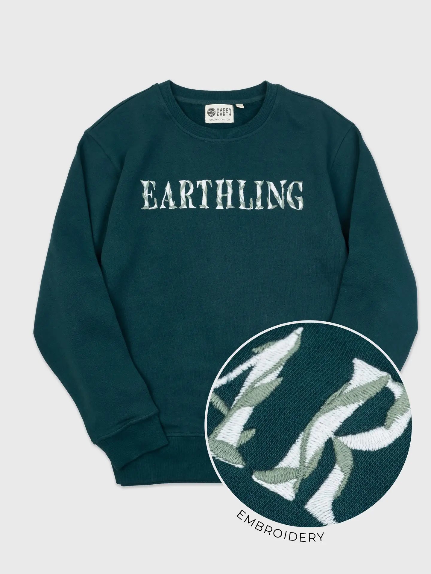Support team Earth in this cozy pullover, embroidered with ivy climbing over "Earthling".