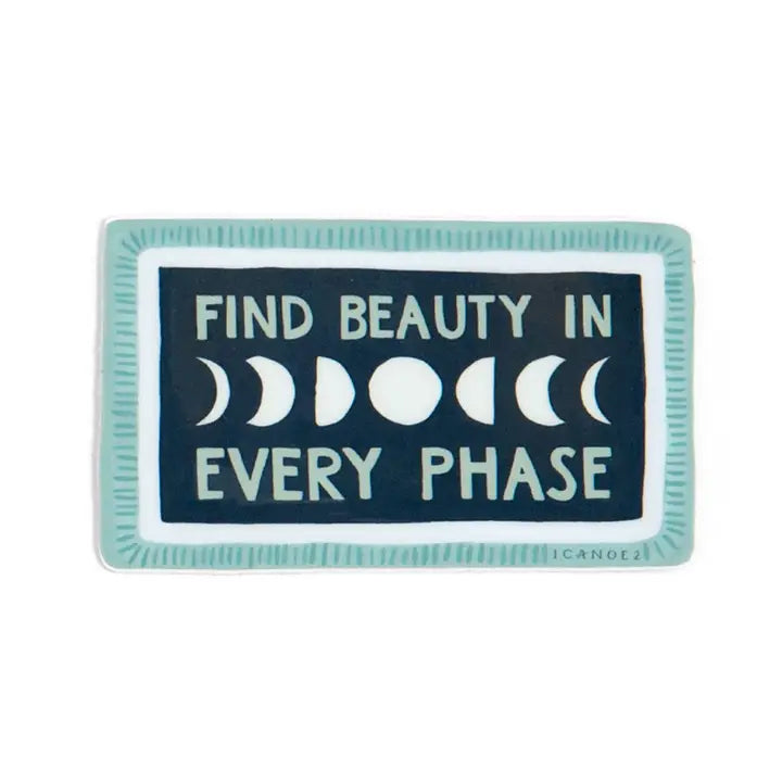 Discover the good in every phase with our Find Beauty Decal Sticker. Its matte vinyl construction and water-resistant finish make it a durable choice for personalizing your laptop, water bottle, notebook, and more. Add a touch of positivity to your surroundings with this sweet moon-phase-inspired decal.