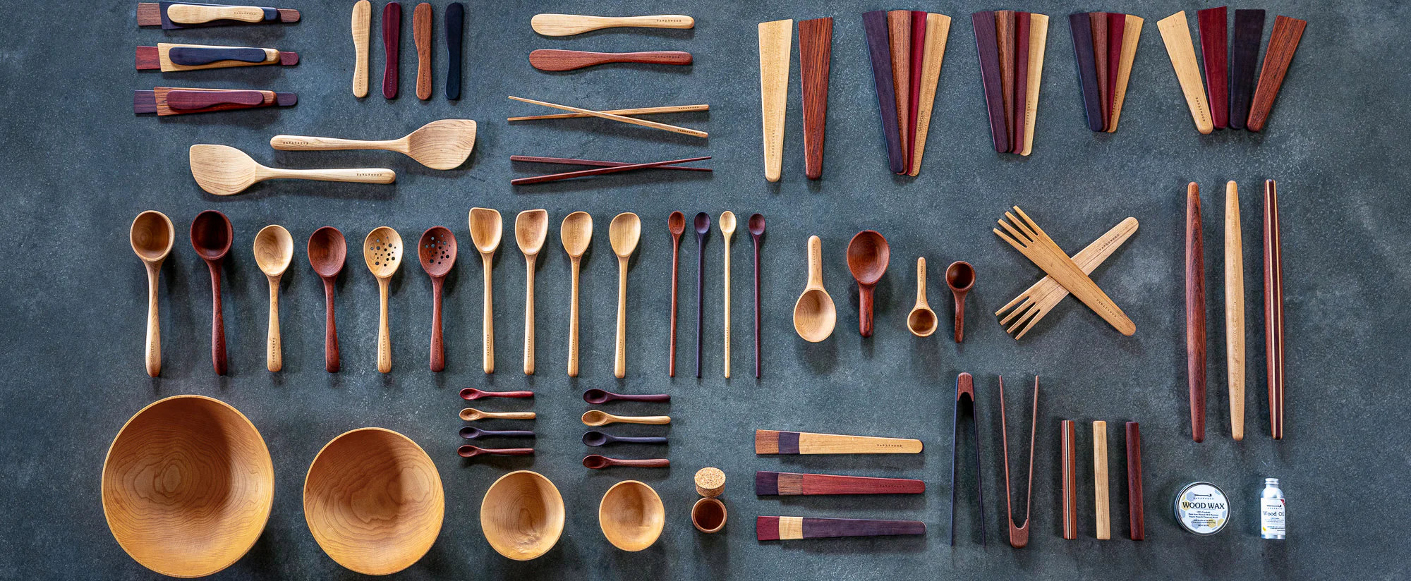 Simplify your kitchen with this set of three multipurpose wooden saute utensils. These hardwood spatulas do it all from mixing and stirring to flipping to tasting. And while the saute tools are useful, they are also beautiful enough to display on your counter tops - perhaps in one of our concrete utensil holders? Each set includes three wooden spatulas (1 large, 1 medium, 1 small), use two to serve salad. Minimal and elegant design stores easily in a drawer or utensil holder.
