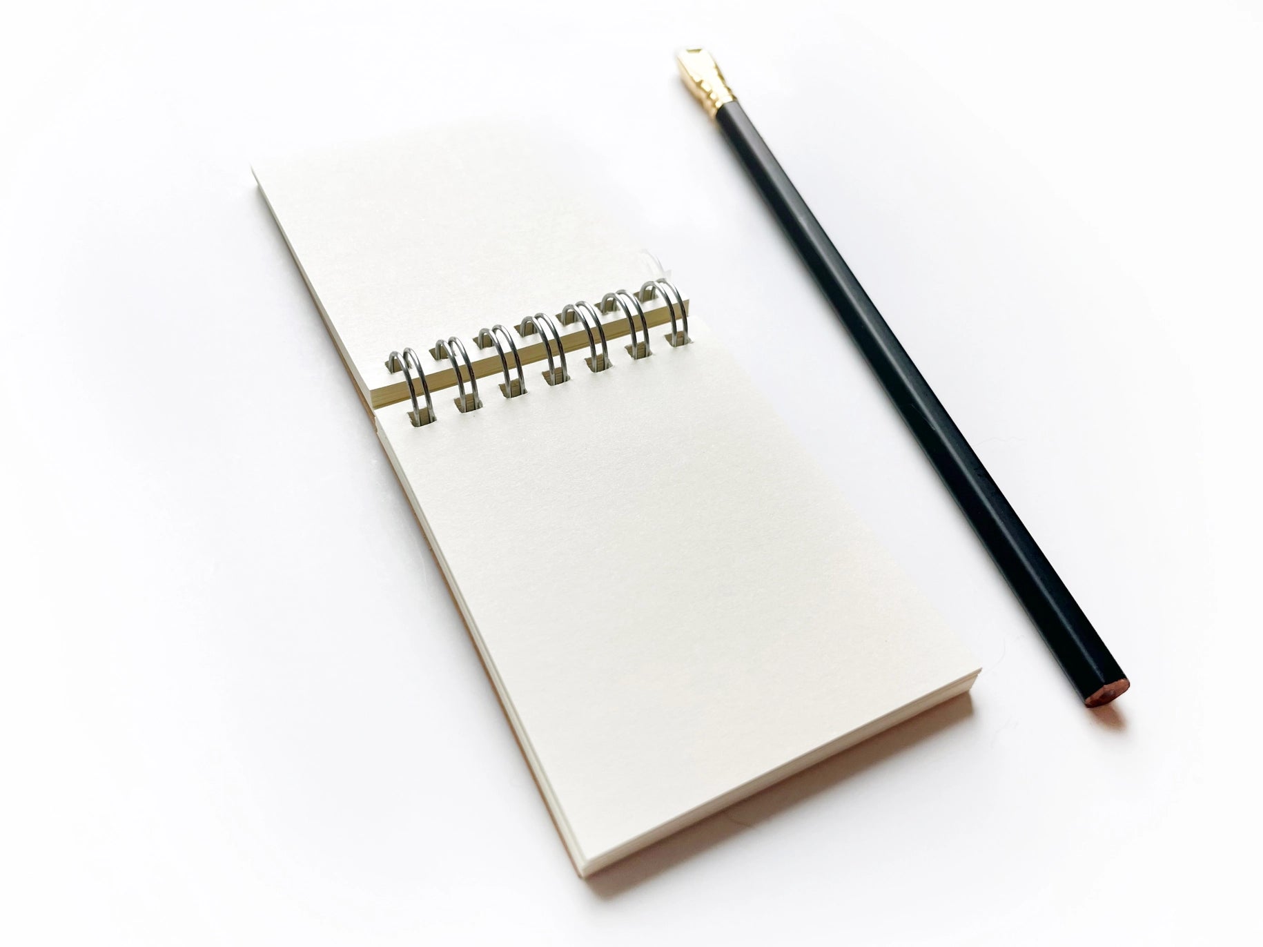 Journal size is 2.5" x 3.25" with top-bound spiral wire binding and a kraft cardstock cover. 100 blank pages / 200 sheets. Cover board weight is 350 gsm. Interior paper weight is 100 gsm, and is designed to hold up to ballpoint pens, rollerball pens, fountain pens, and highlighters.