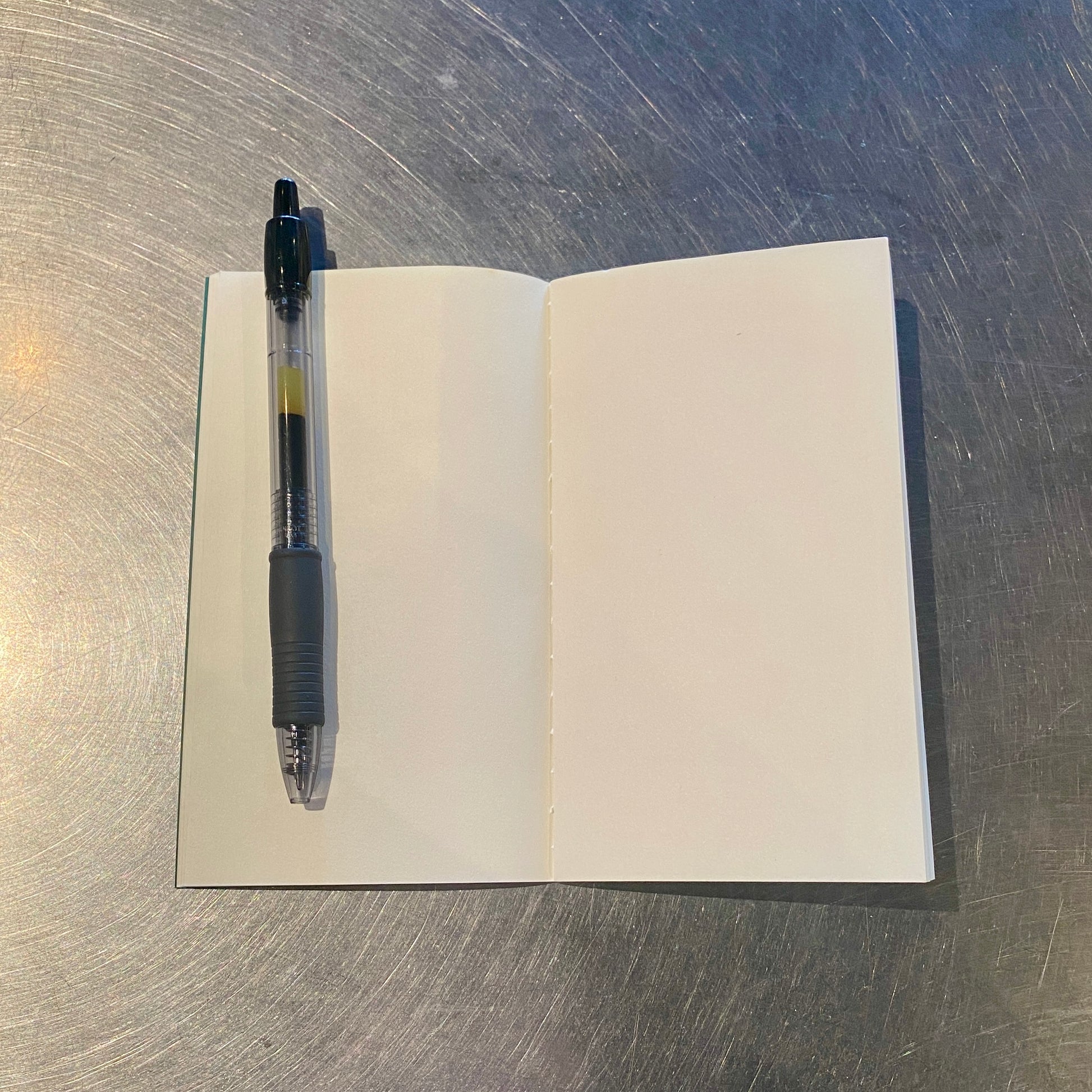 Journal size is 3" x 5.5" and contains 60 blank pages (120 sheets) with a saddle stitch binding. Cover cardstock weight is 260 gsm. Interior paper weight is 80 gsm, and is designed to hold up to ballpoint pens, rollerball pens, fountain pens, and highlighters. As always, well-designed and well-crafted.