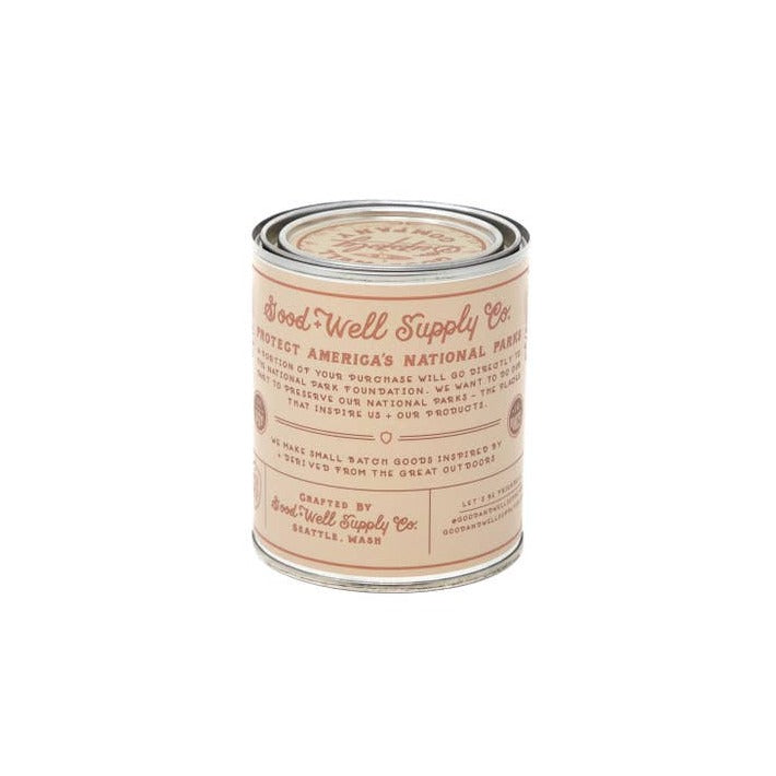 All natural soy candle handcrafted to impart the scents of the wild and pristine lands of America's national parks. A portion of the sale of this product will be donated to the National Park Foundation so we can do our part to protect the places that inspire us & our products.