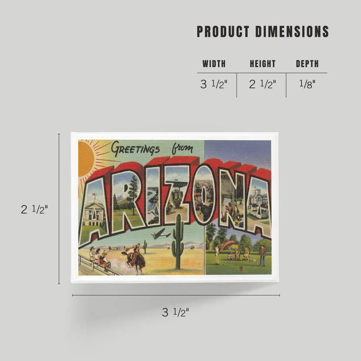 Experience the vibrancy of the desert with this high-quality, full-color Arizona Magnet. Place it anywhere as a souvenir and be reminded of the beauty of Arizona.