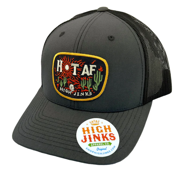 Look hot AF with this daring trucker cap! Featuring bold colors and a stylish skull and saguaro design, this cap is ready for your wildest adventures. Take risks and make a statement with this eye-catching accessory!
