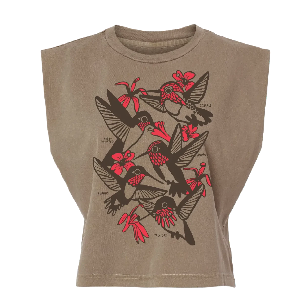Get to know your North American hummingbirds with this boxy tank, which features five species: Ruby-throated, Rufous, Calliope, Anna’s, and Costa’s.