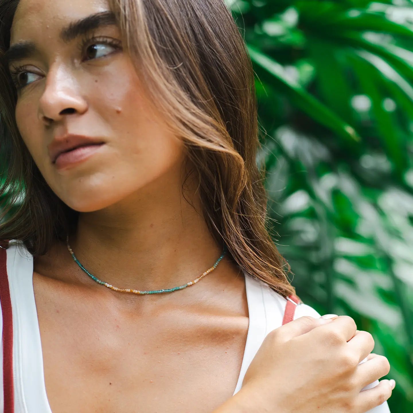 Our Goddess Collection was designed as a talisman of positive affirmations, guiding you confidently towards your inner goddess. Featuring various healing stones and delicate crystal beads, this necklace beautifully blends style and purpose. Experience the power of manifestation by repeating the affirmation, 'I am Divine.' This piece adds a touch of meaningful elegance to any ensemble.