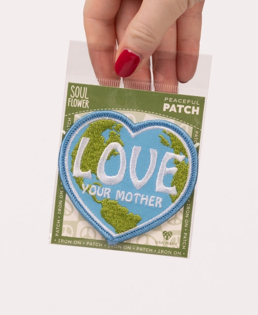Show your appreciation for Mother Nature by rocking this Love Your Mother Iron-On Patch! Great for adding to your go-to tote, jeans, or throw pillow. Designed with a heart and an earth background, plus the phrase: LOVE YOUR MOTHER.
