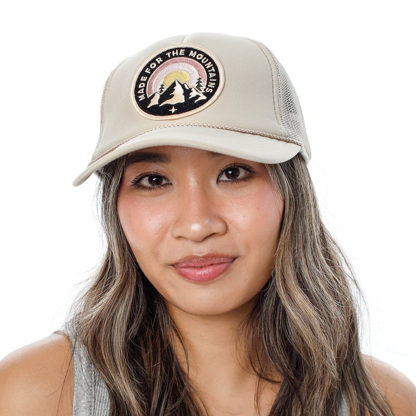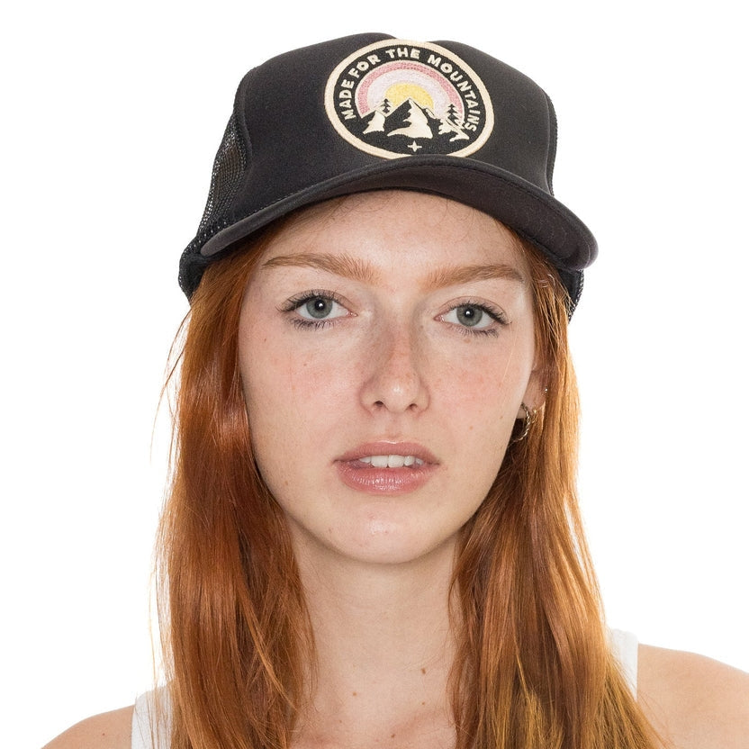 Find your 'Friday Happy' no matter what day it is! A hat to look and feel good in! A comfortable foam front, mesh back, high crown trucker hat featuring an adjustable snap back. * Front: 100% polyester * Back: 100% nylon * Front panel with lining