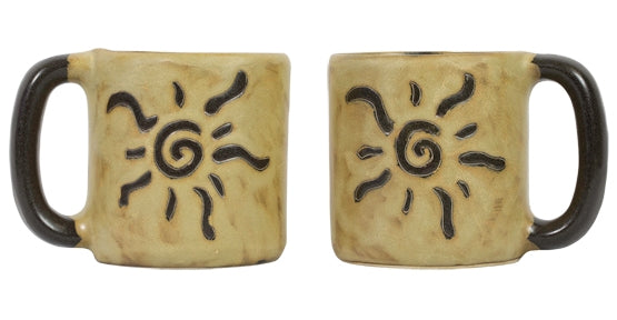 This 16oz Sunburst Stoneware Mug is expertly crafted with a southwest style, featuring a hand-etched swirl sun on each side and a rustic finish. Its durable stoneware construction and glaze make it dishwasher and microwave safe and perfect for daily use. Enjoy a comforting cup of coffee in the desert with this eye-catching mug.