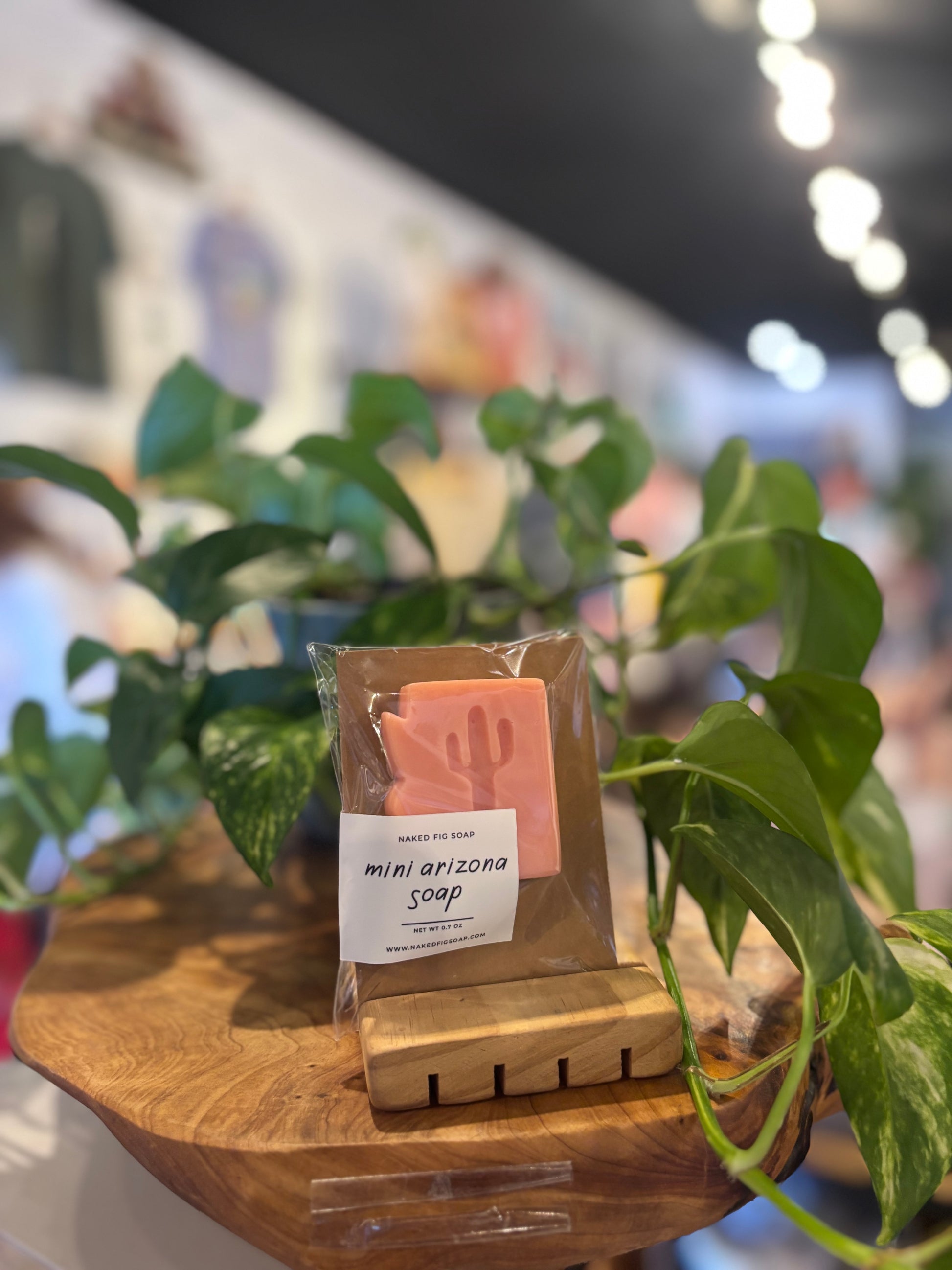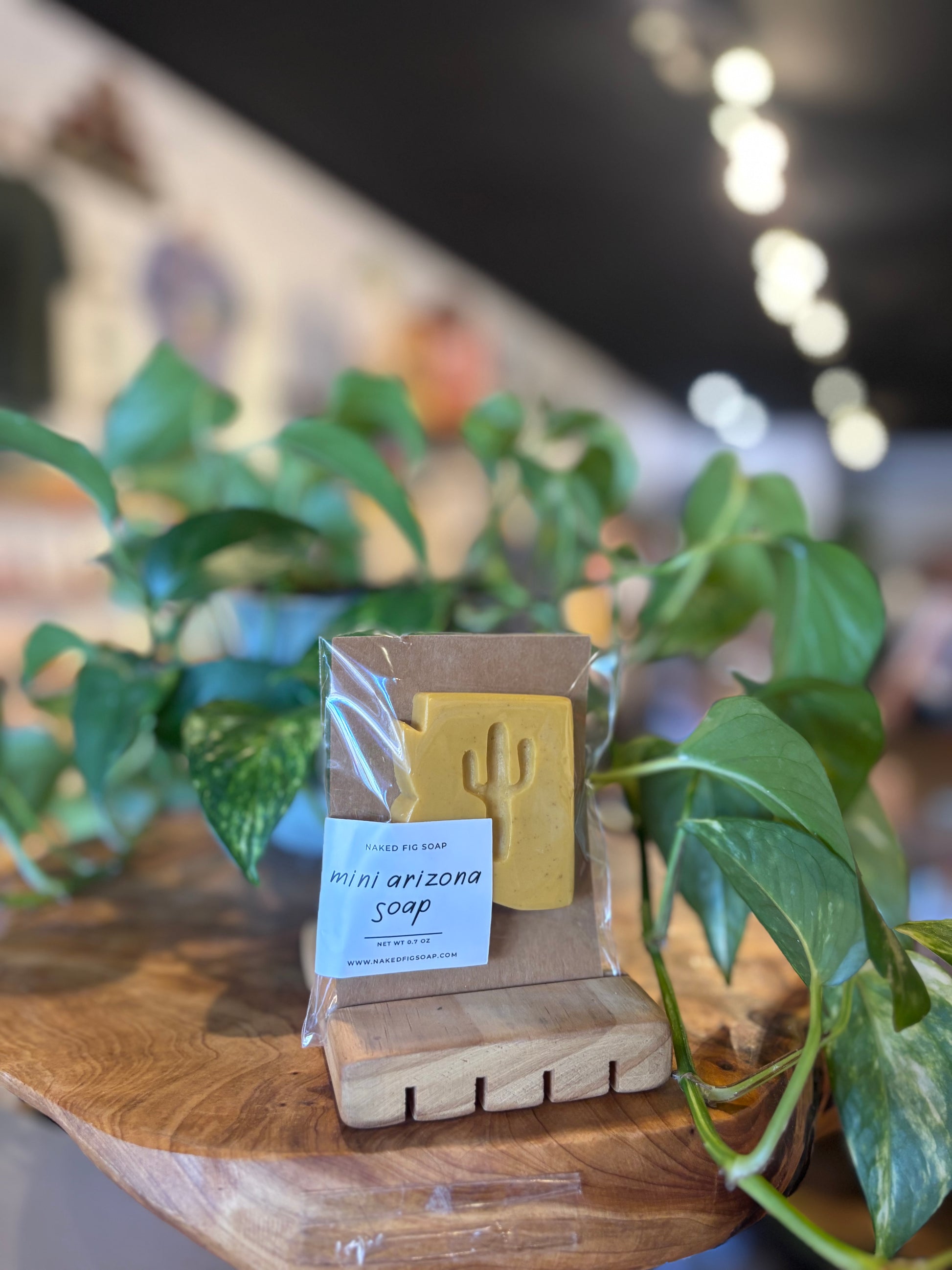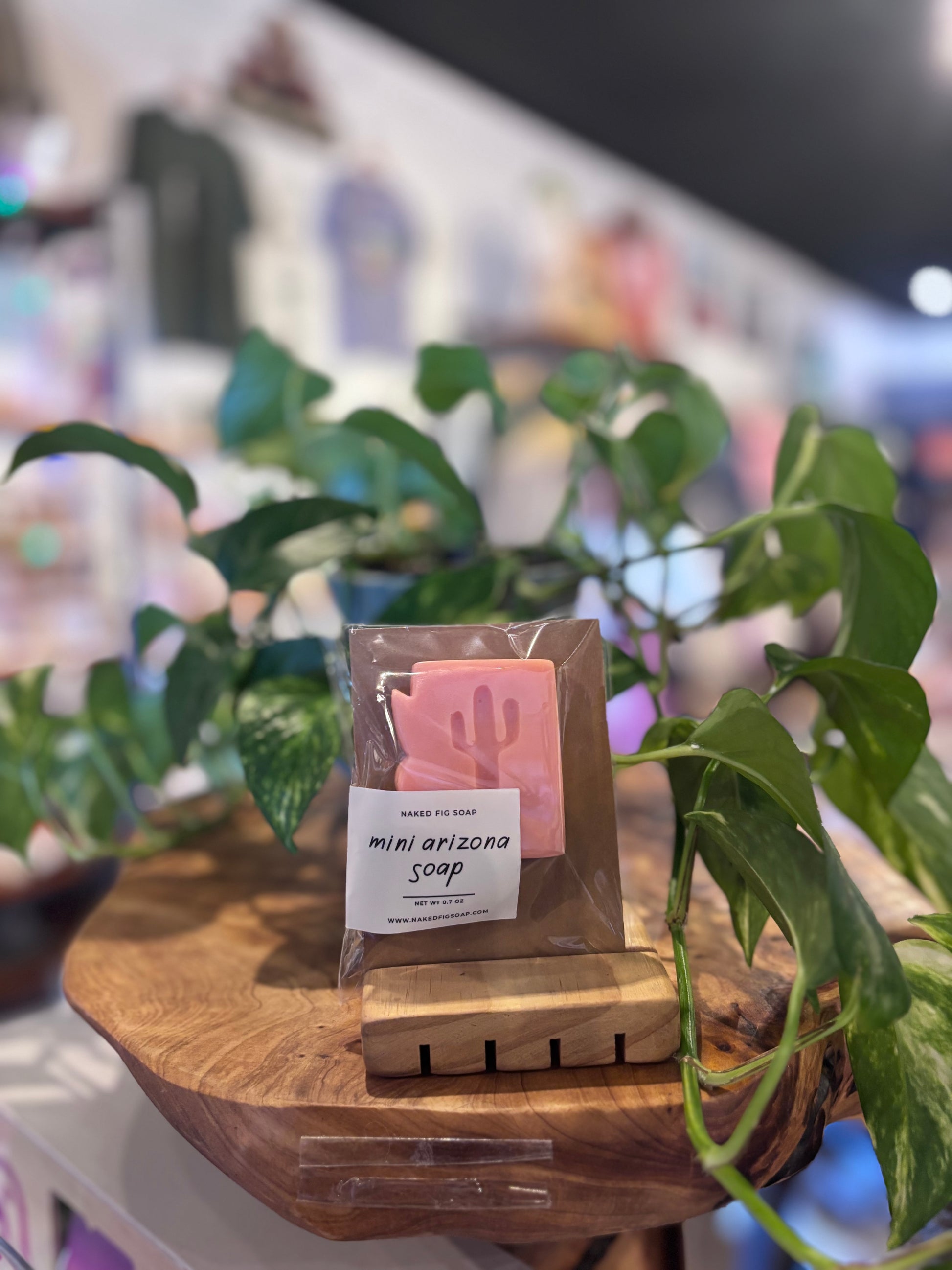 Inspired by the iconic saguaro cactus, these mini soaps embody the beauty and resilience of Arizona’s landscape. With a simple, clean aesthetic, they make a charming gift or display piece. Each soap weighs approx. 0.7 oz. and measures about 2.25 x 2.25 in. Made with the same vegan, non-toxic SFIC Shea Butter base as our Arizona Collection, they support our minimal-waste values by using leftover soap from other batches.