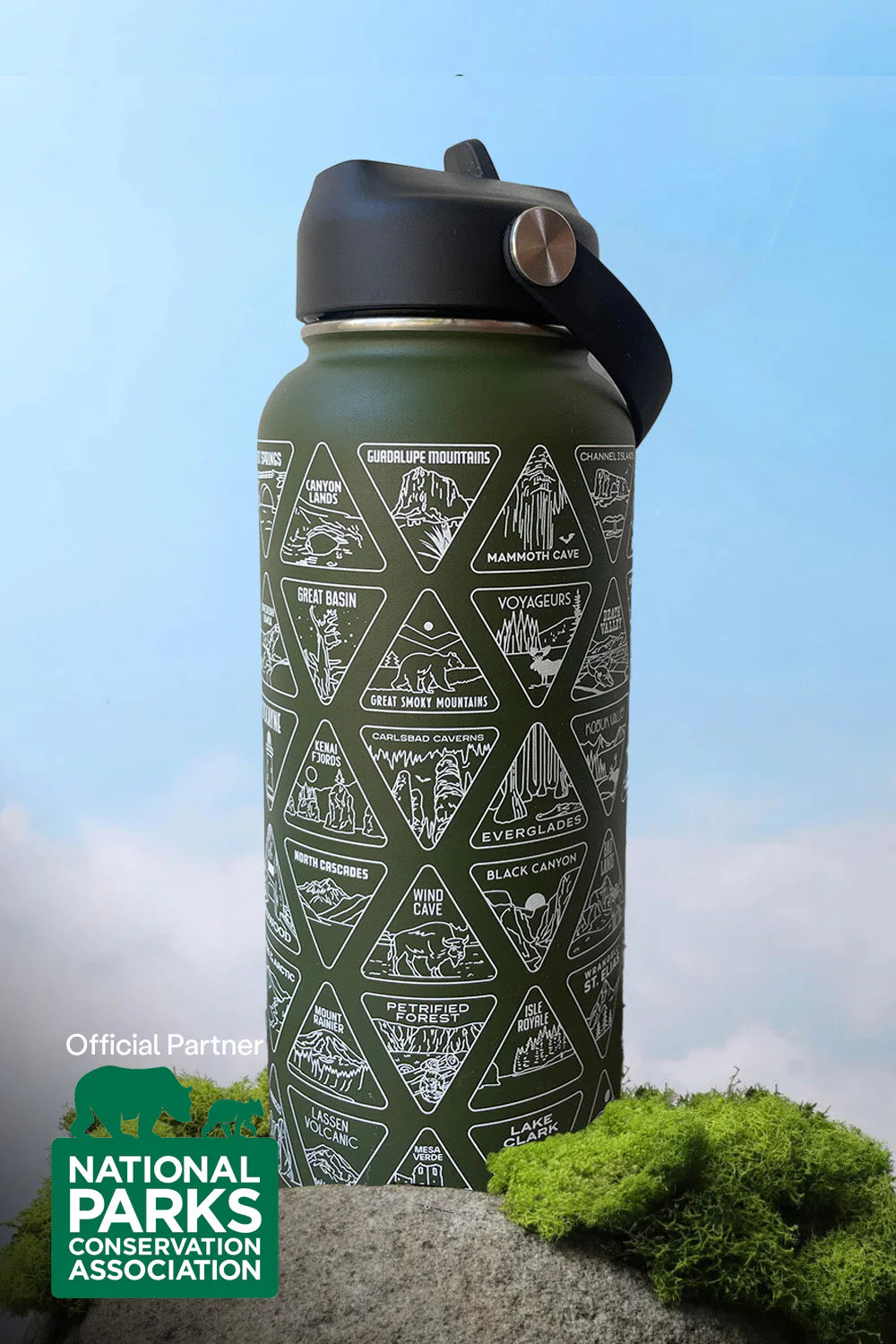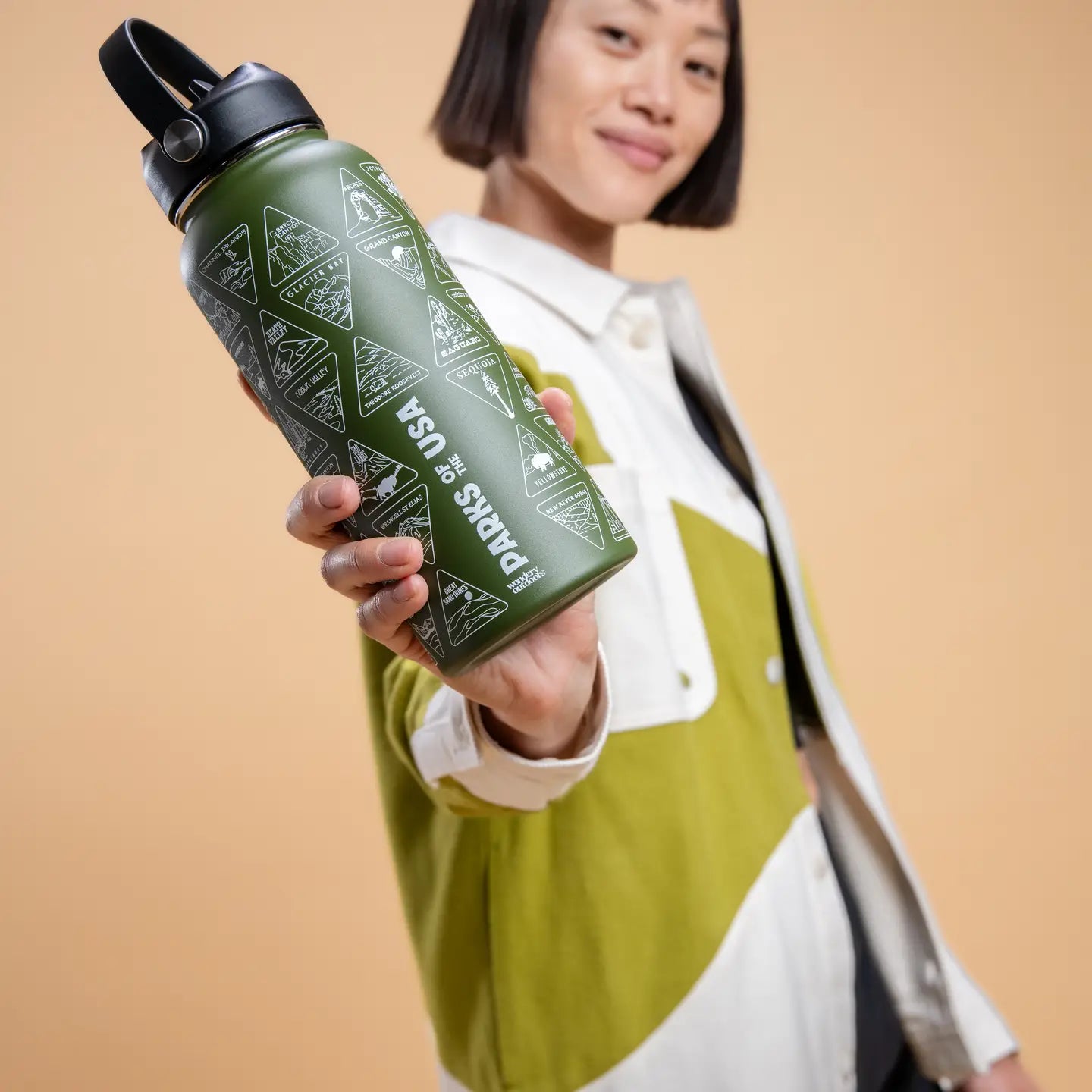 Where have you traveled to? The official Parks of the USA Bucket List Water Bottle keeps track of all your adventures and helps you stay hydrated.