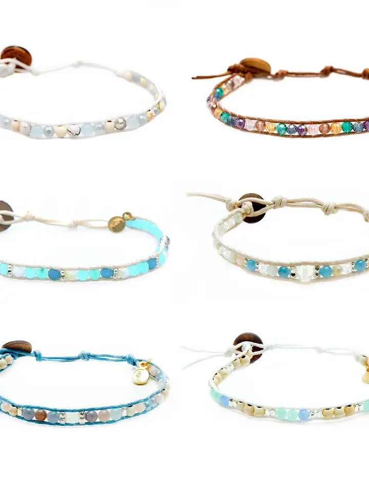 The hidden beauties of the ocean come out during low tide and these bracelets are no exception! Each accessory is handmade with the highest quality of locally sourced materials such as Moonstone, Amazonite, Quartz, Howlite, and more!