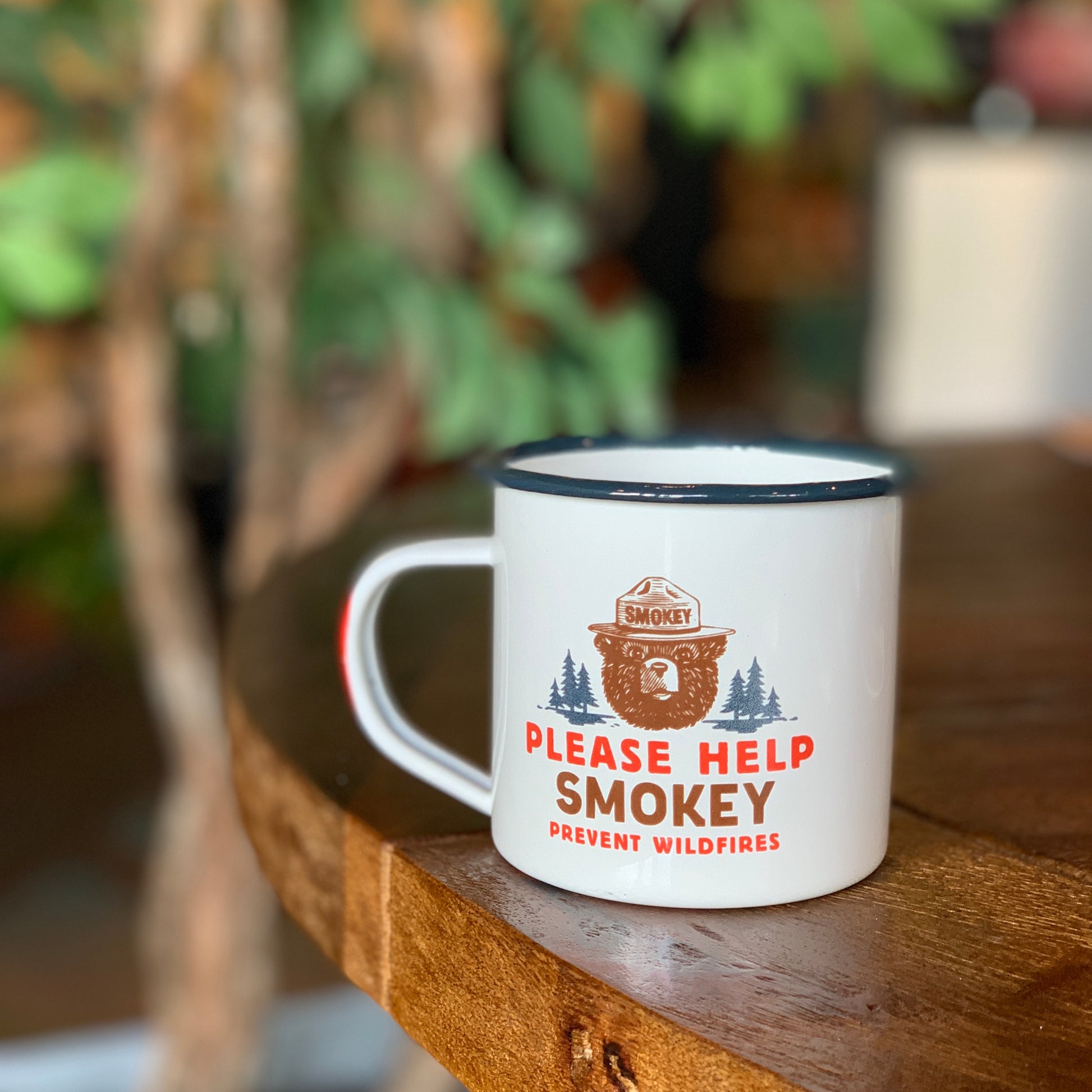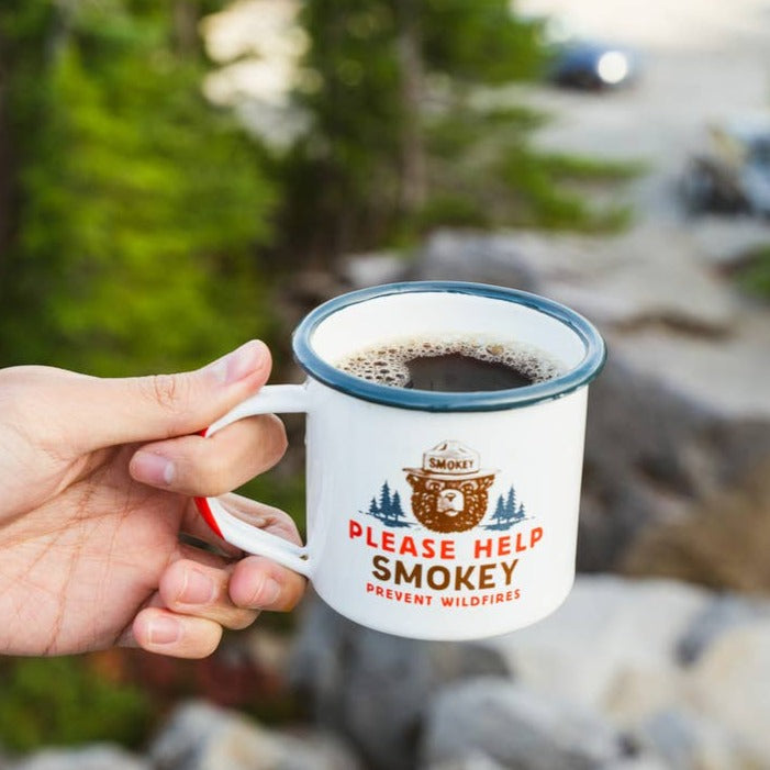 Take the message of Smokey Bear out to the wild. This mug, which features a revised design of classic Smokey, is perfect for all your outdoor adventures (including safe fire practices, of course). Landmark's enamel-coated steel mugs come in classic designs and are essential to any campsite, home cupboard, or office desk. The mugs hold 13 fl. oz. and are 4.5"x3.5"x3.25". They are packaged in a plastic-free cardboard display box. The packaging is 100% post-consumer, unbleached, and recyclable.