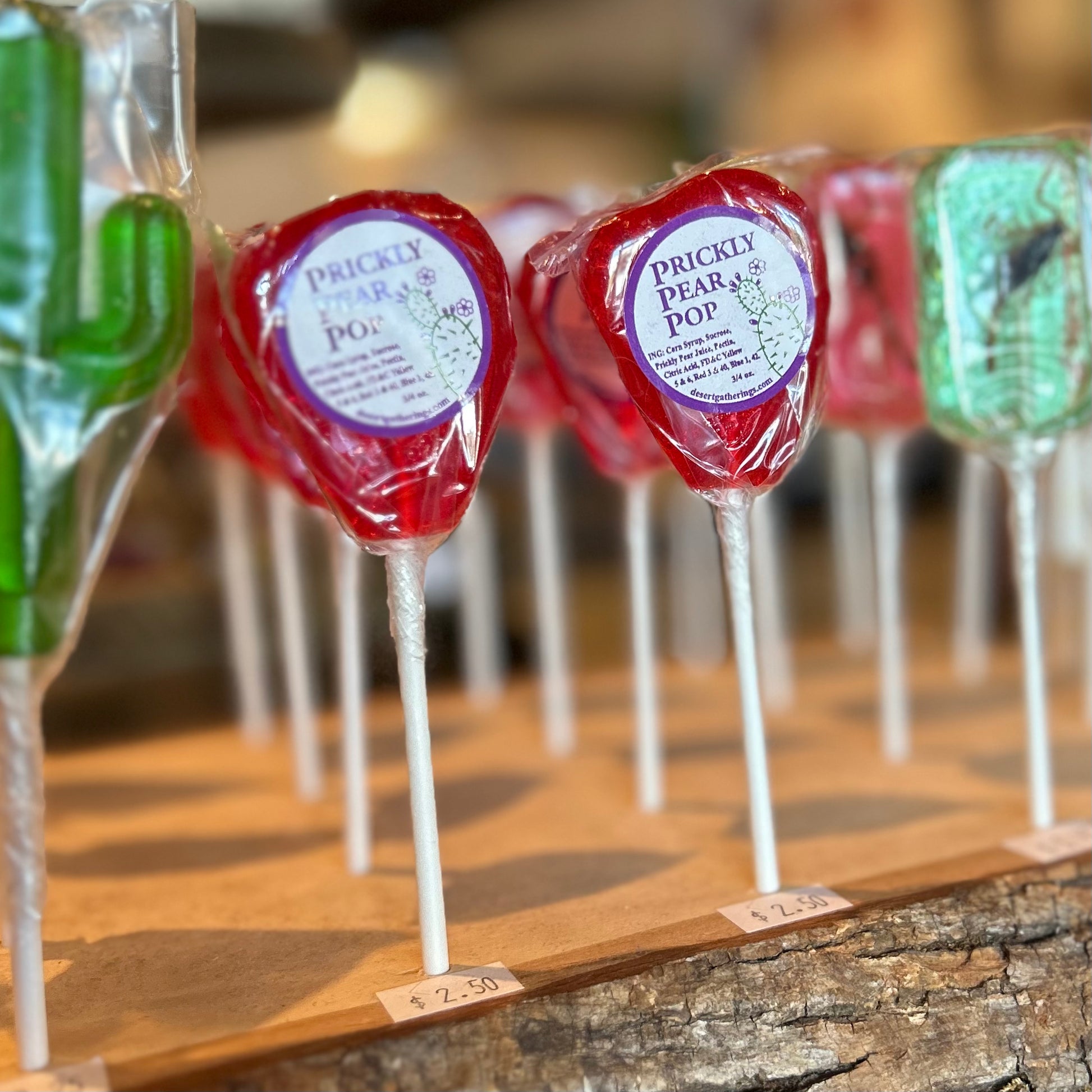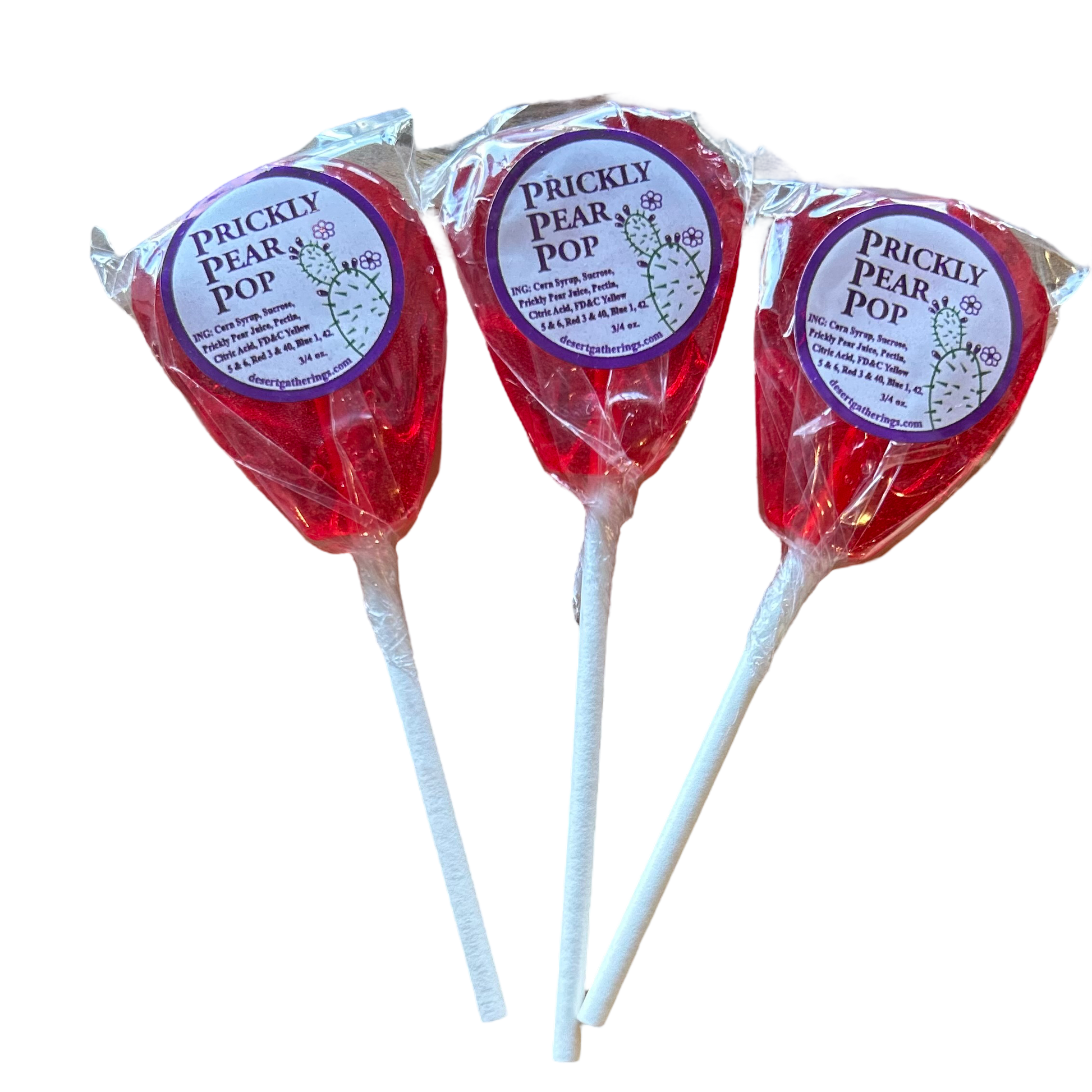 Treat your taste buds to a prickly treat! Our Prickly Pear Suckers are made from real prickly pear cactus juice, giving each lollipop a bold, sweet flavor. Each one is a tantalizing translucent red, so you can't miss them. Perfect for a southwestern gift or just for a sweet treat!