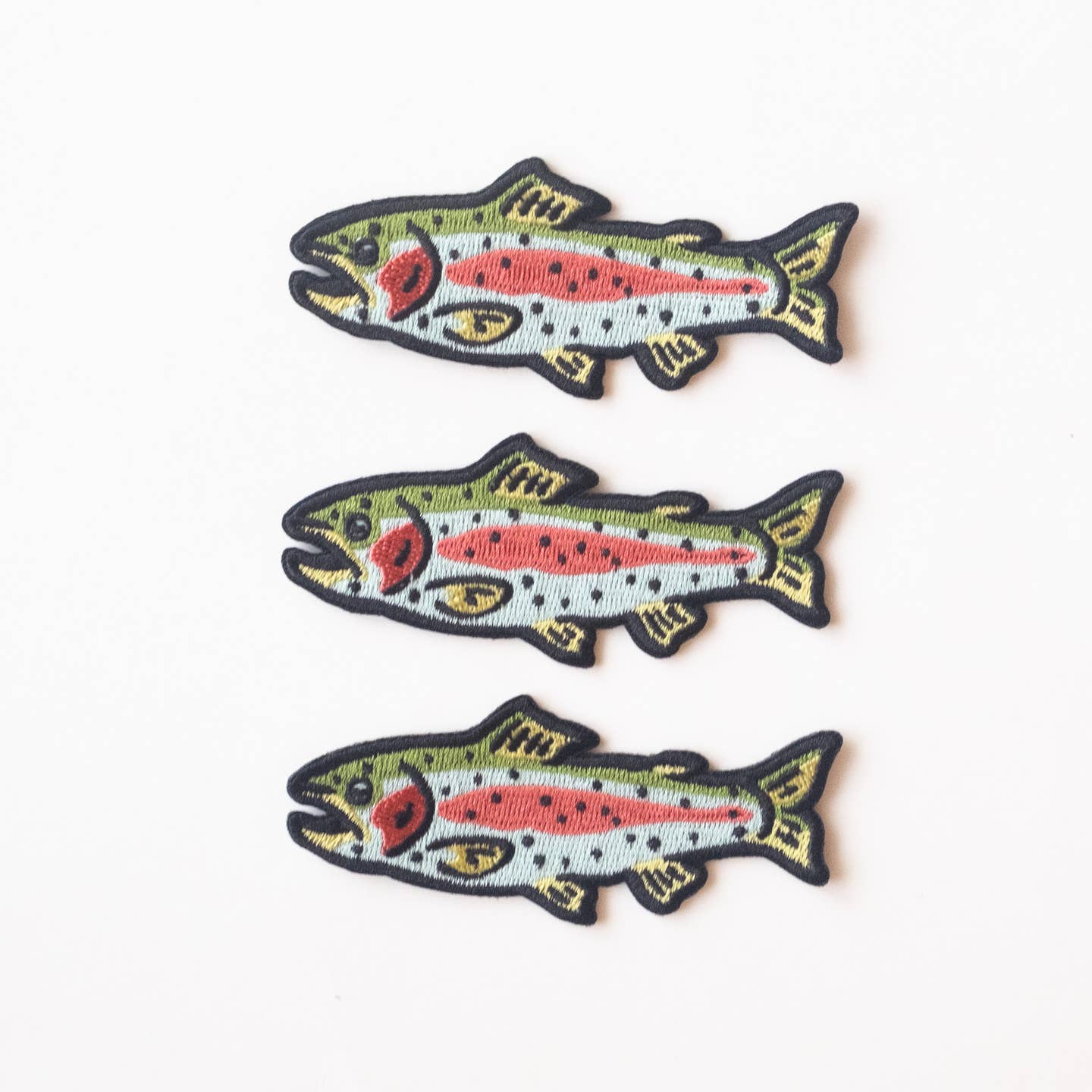 Introducing our Rainbow Trout iron-on patch. Measuring 1.5x3 inches, this finely embroidered design captures the vibrant colors and distinctive markings of a classic rainbow trout, perfect for adding a touch of angler pride to your favorite jacket, hat, or tackle bag.