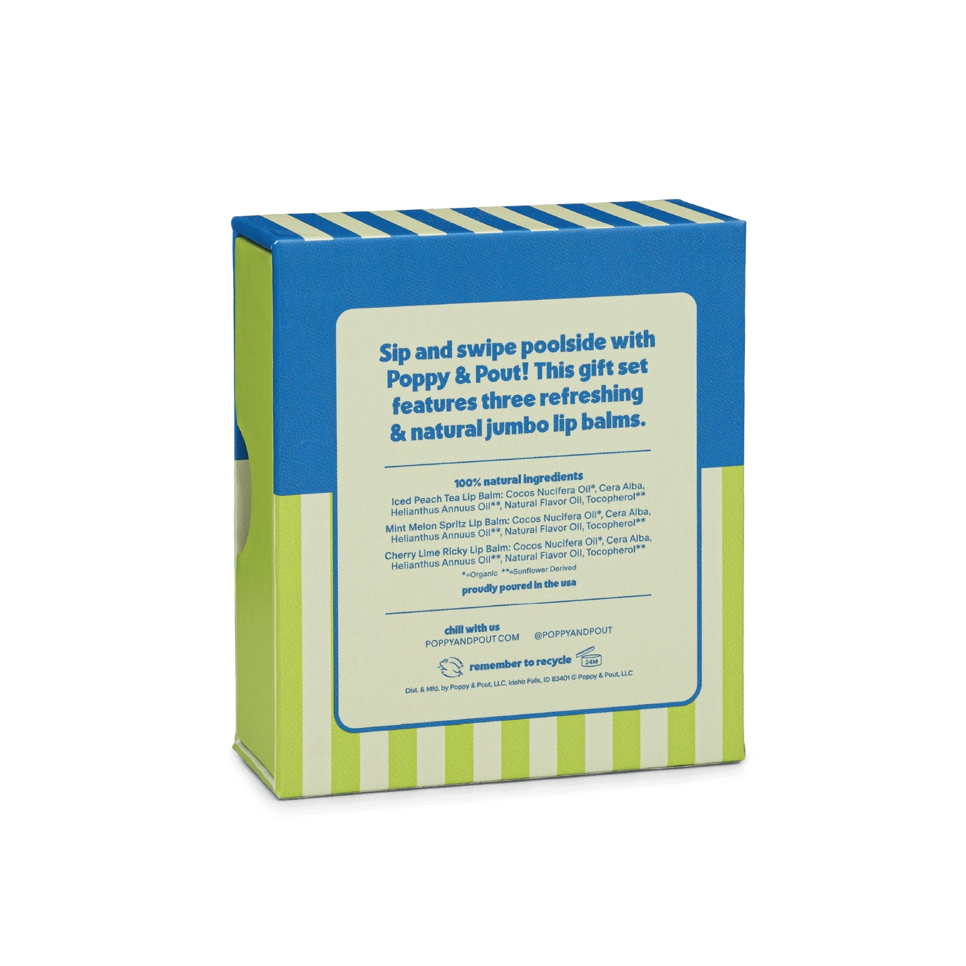 Dive into our new Retro Refreshers lip balm trio! This gift set is the ultimate summer accessory, bringing the refreshing vibes of cool summer drinks straight to your lips. This vibrant set features three lip balms inspired by the bright, fruity flavors of classic summer beverages.