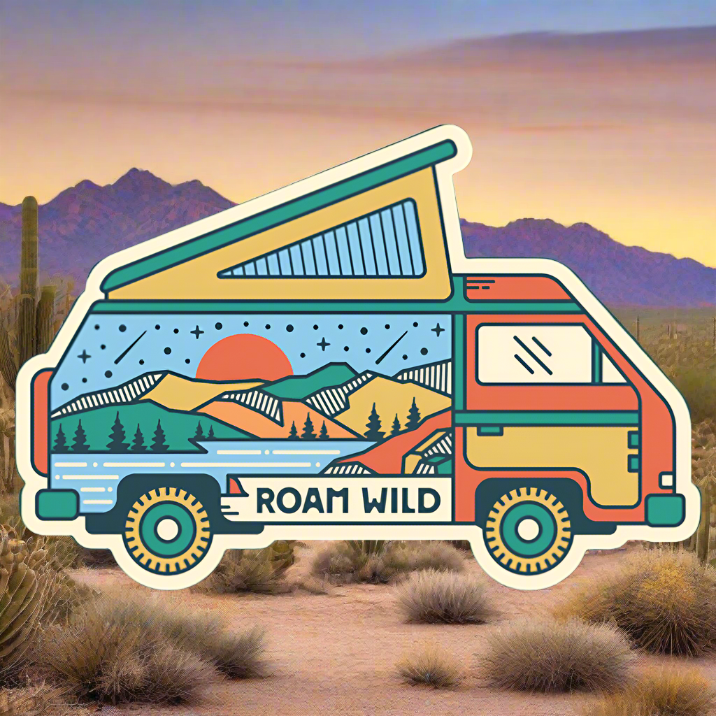 Unleash your inner explorer with the Roam Wild Van Sticker. Featuring a sense of adventure, this sticker is perfect for all your travels. Show off your free spirit and passion for adventure with this sticker that can easily be applied to just about any surface.