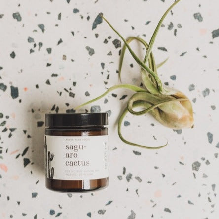 Our Saguaro Cactus scent is a spicy floral creation made up of cactus jade flower, agave, moss and aloe. This scent is a true representation of walking into a florist shop and experiencing the aroma of fresh-cut flowers, stem trimmings, and botanical-soaked water. Light and fresh - perfect for Spring and Summer.