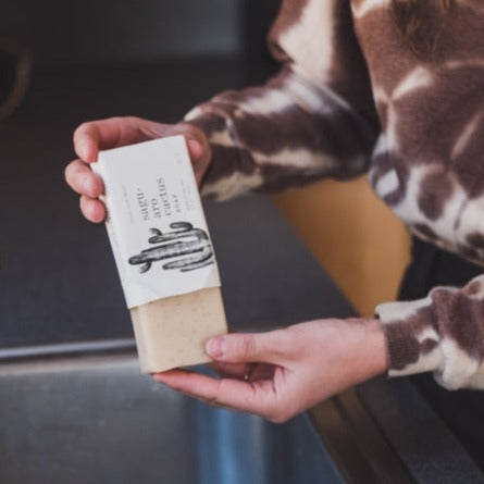 Our Saguaro Cactus scent is a spicy floral creation made up of cactus jade flower, agave, moss, and aloe. This scent is a true representation of walking into a florist shop and experiencing the aroma of fresh-cut flowers, stem trimmings, and botanical soaked water. Refreshing, fresh scent for year-round enjoyment. Our bar soaps are all handmade using a cold press process. Paper label stock is textured for a more high-end luxurious look/feel.