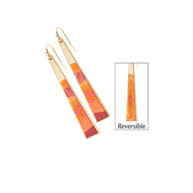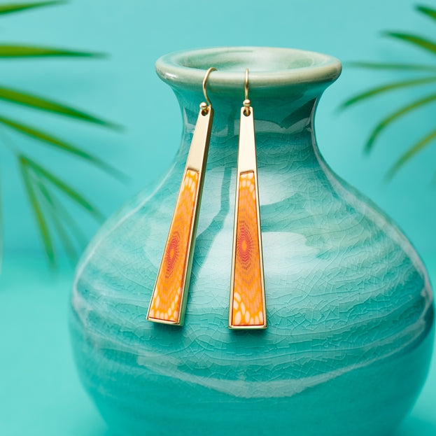 - Handcrafted polymer clay inlays nestled in a double-sided triangle shaped bezel frame