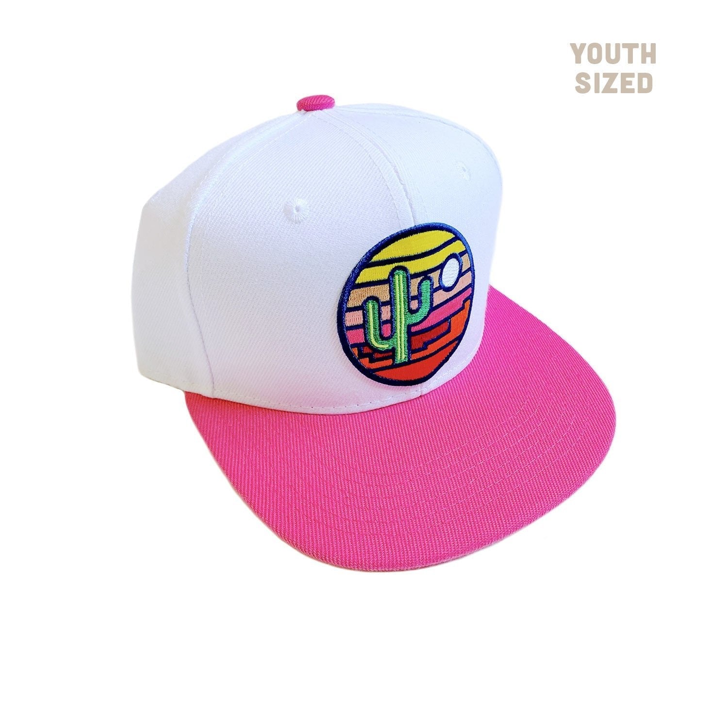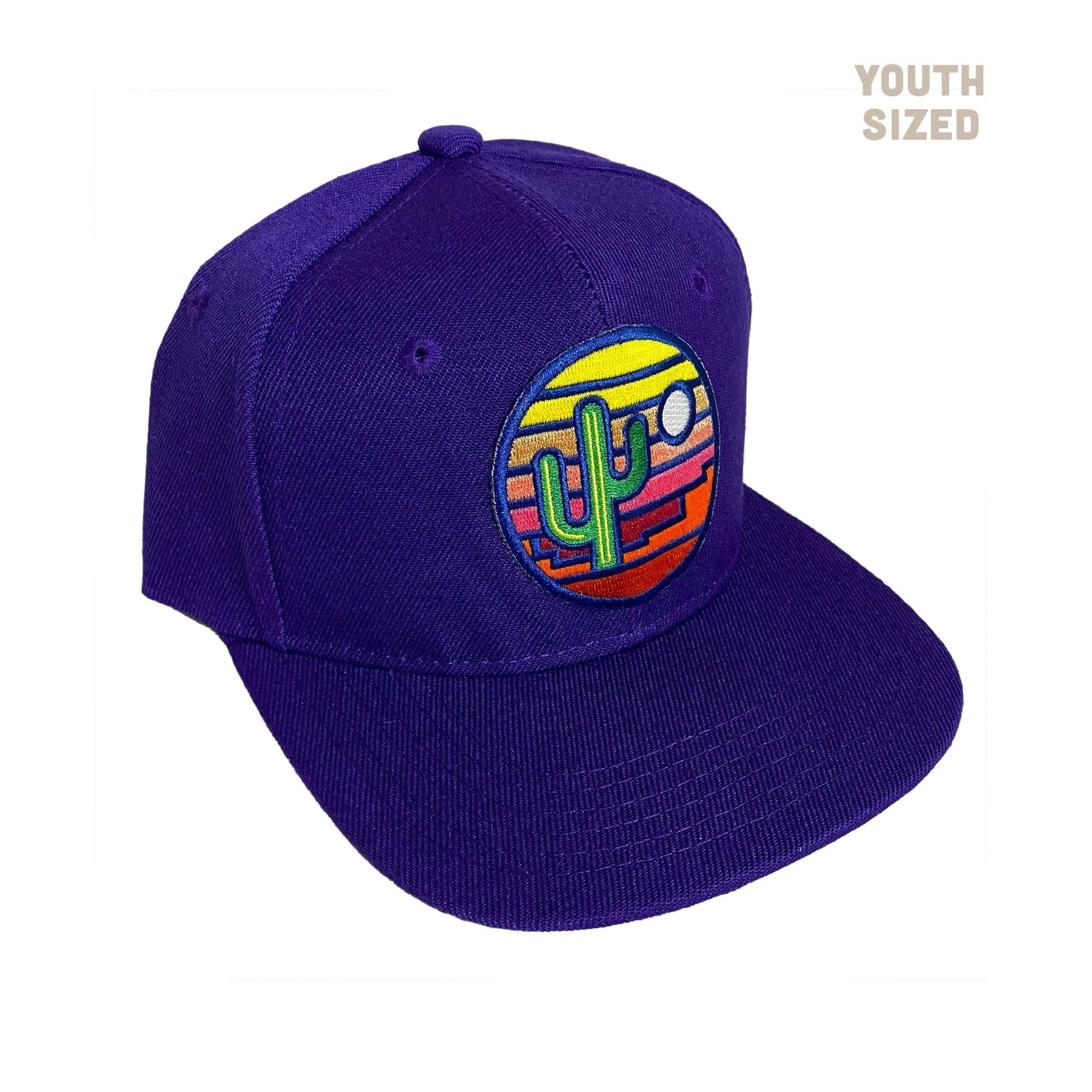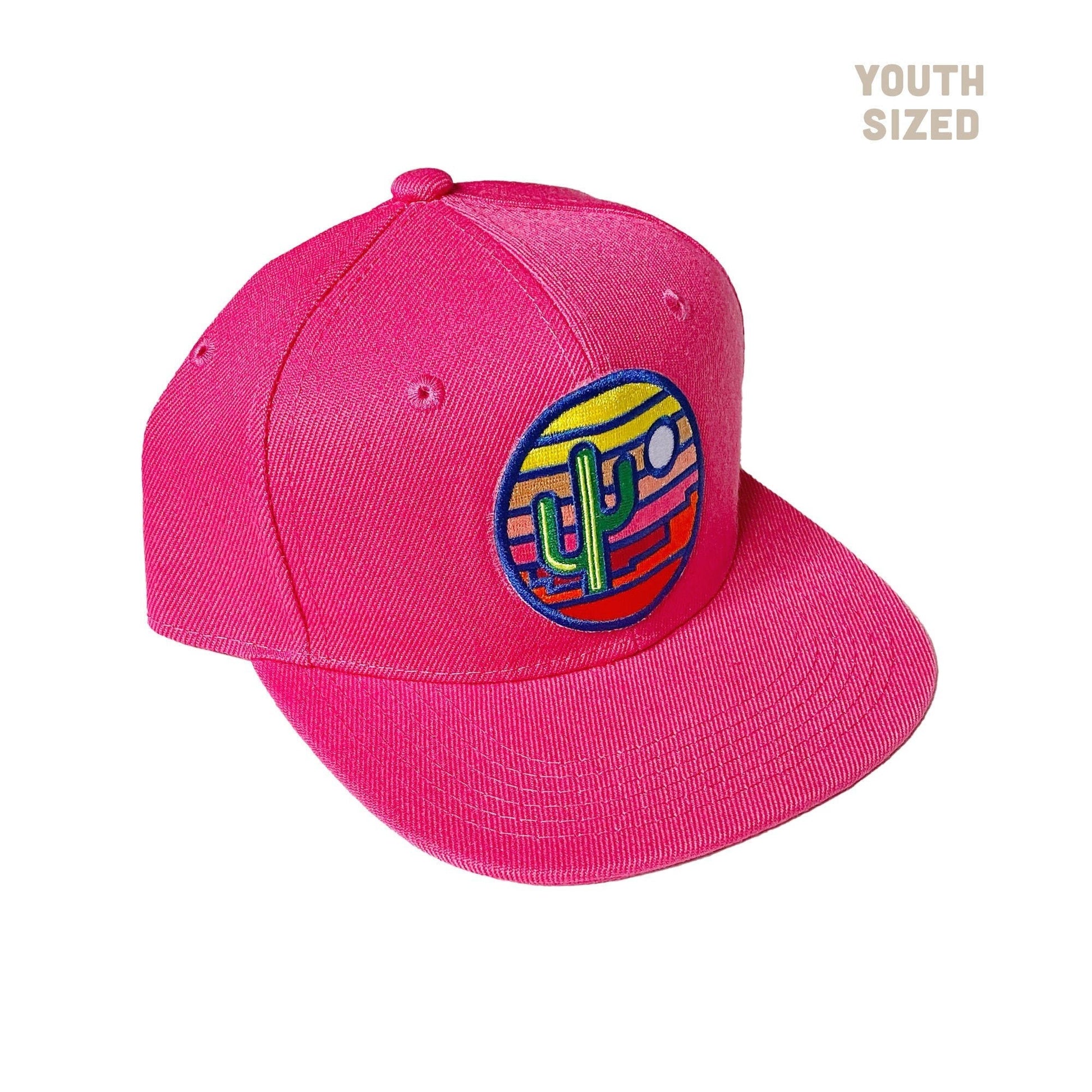 Watch your kiddo light up the day with this one-of-a-kind Stained Glass Sunset Kids' Flatbrim! Featuring a minimalist design with beautiful saguaro, sunset, and desert colors, they'll be stylin' like no one's business. Rock out with the sunshine! 🌵😎