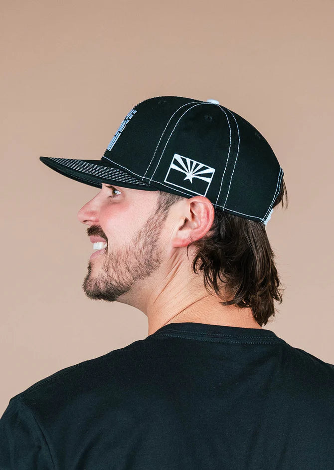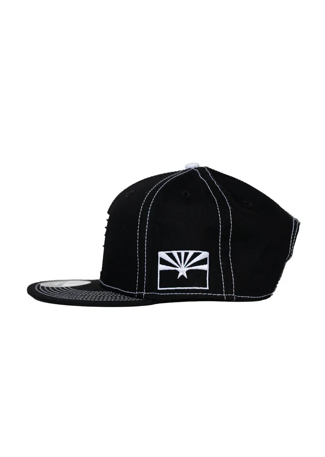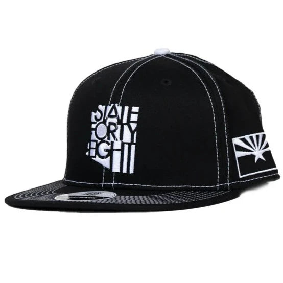 Introducing our pinnacle of headwear excellence: the fully custom State Forty Eight snapback hat. This one-size fits-all masterpiece features love for Arizona embroidered on the front and side panels. Inside, our signature wordmark and more adds a touch of authenticity and pride. For hat enthusiasts seeking quality and style, this is your must-have accessory.
