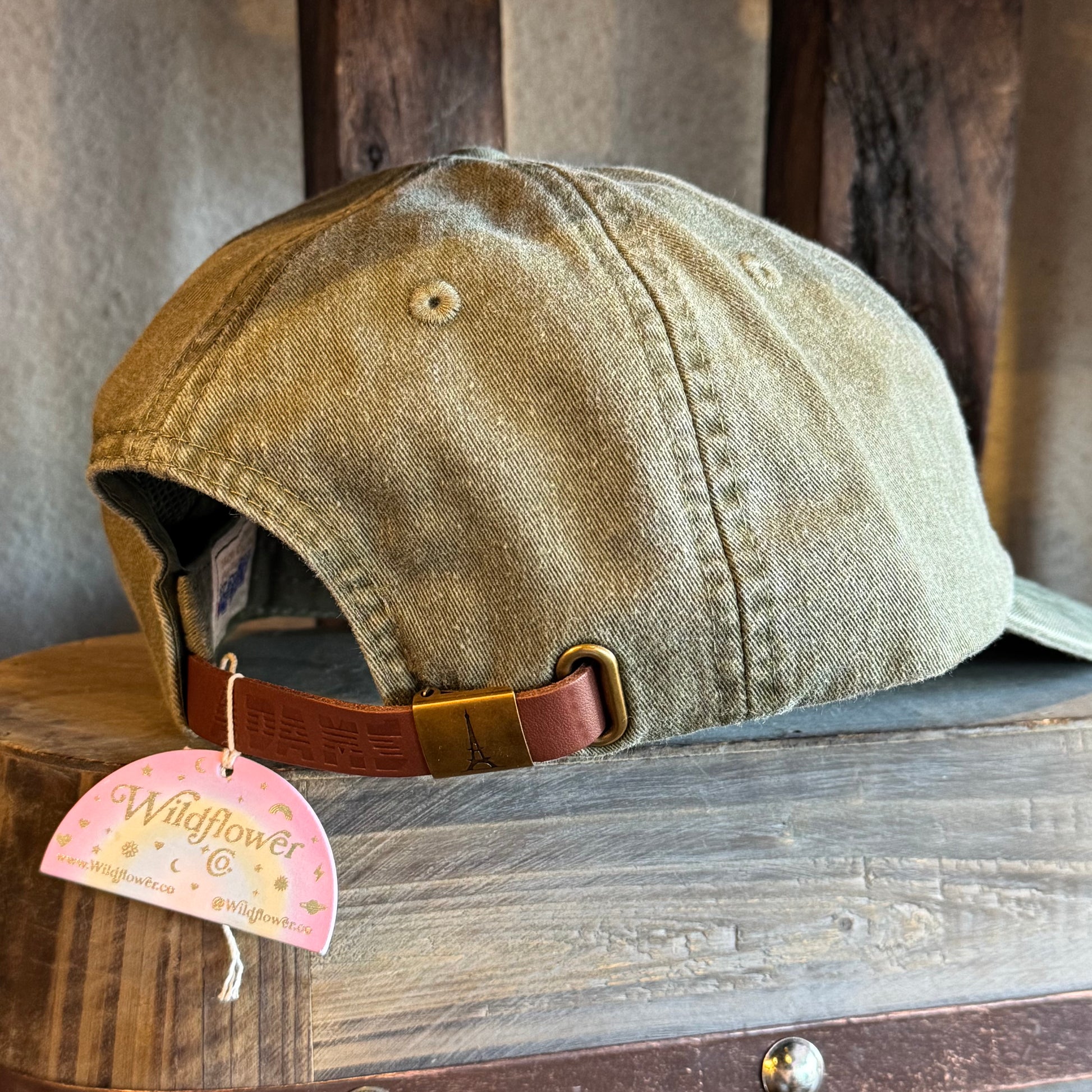 Stay cool in this vintage pigment-dyed 100% cotton twill and unstructured hat. Its tuck-away authentic leather back strap with an antiqued brass buckle ensures adjustability for any size. Get the cool, worn-in look and feel, and be ready for any adventure!