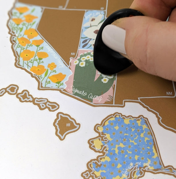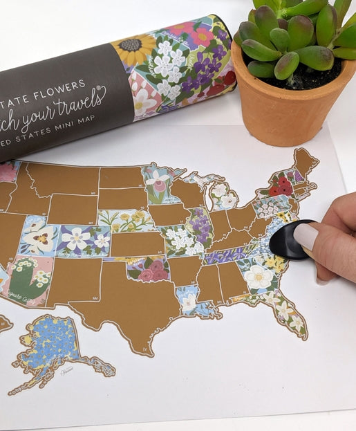 Uncover flowers unique to each state you've visited by scratching off your travels! These mini maps make fun gifts and come in a giftable tube, complete with a scratching tool and instructions. Plus, they're a great conversation starter for small spaces like offices, entry ways, and desks!